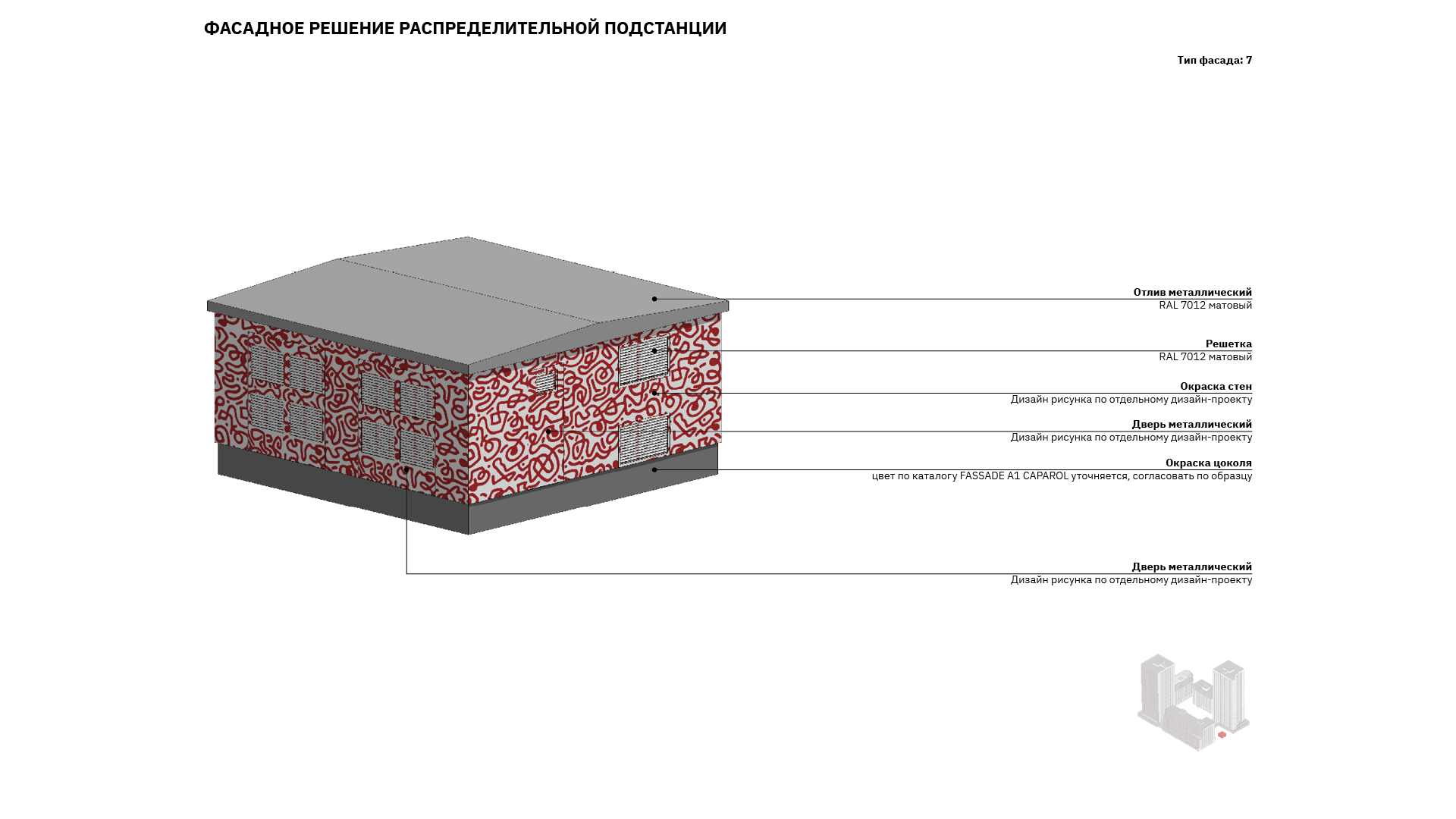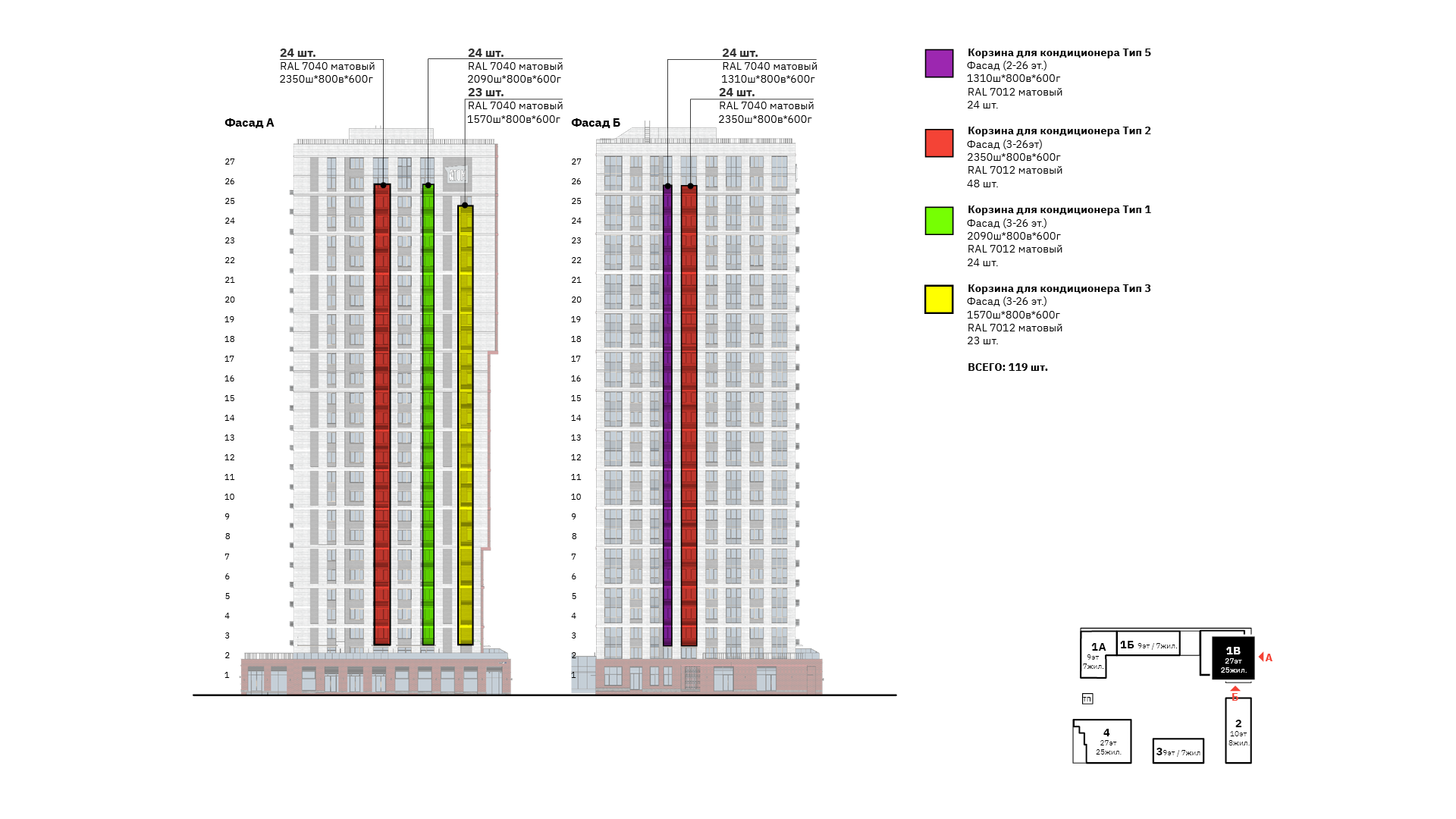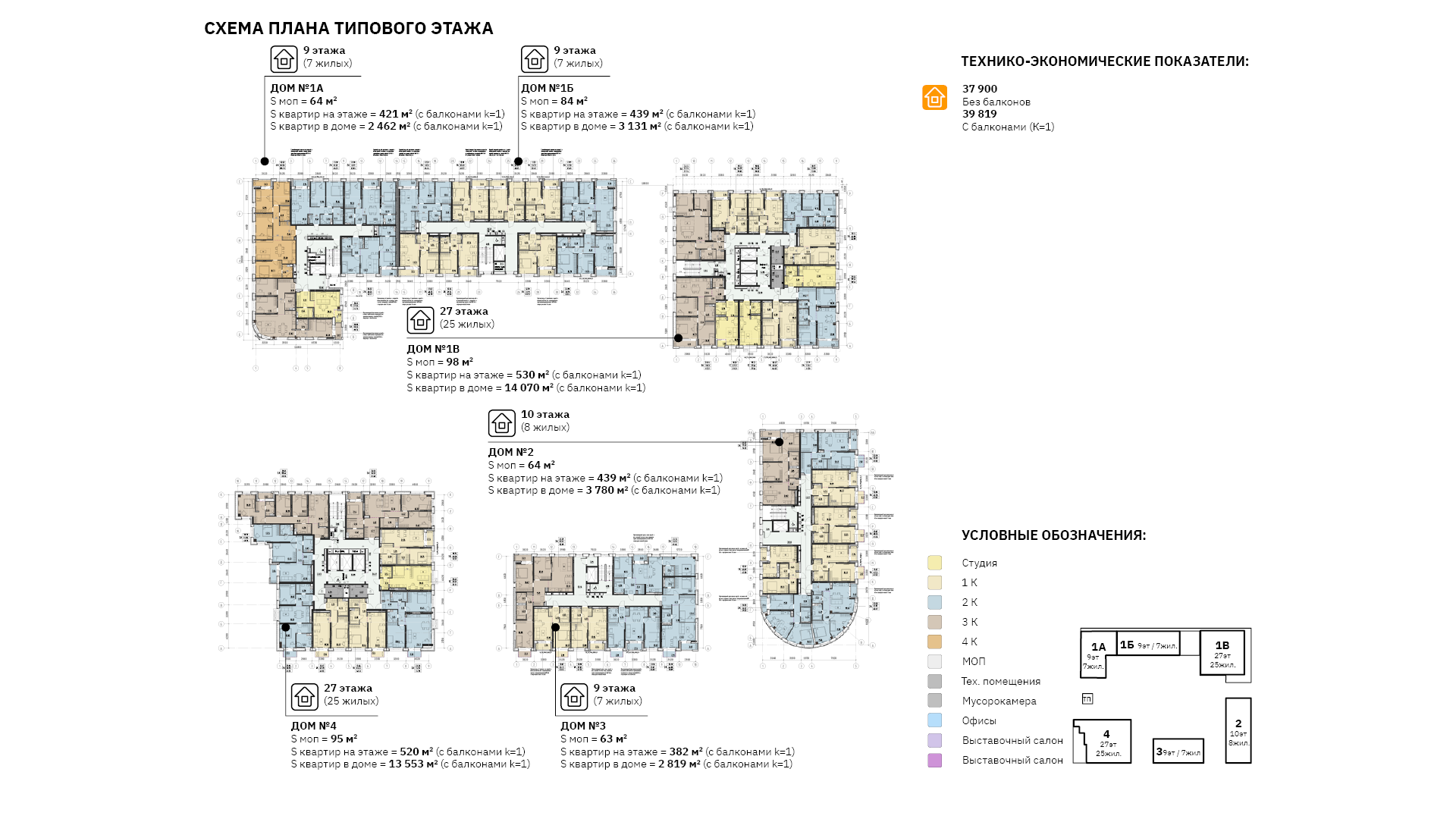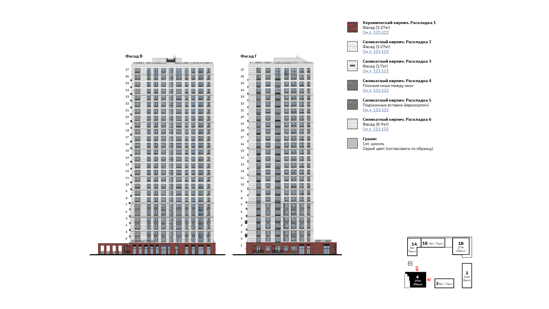 Квартал сформирован периметральной застройкой, в которой около 70% секций решено в базовой этажности – до 9 этажей. Два высотных дома (27 этажей) находятся в угловых частях квартала, чтобы избежать их скопления. Здание, которое выходит на ул. Парина, также играет роль локальной доминанты.