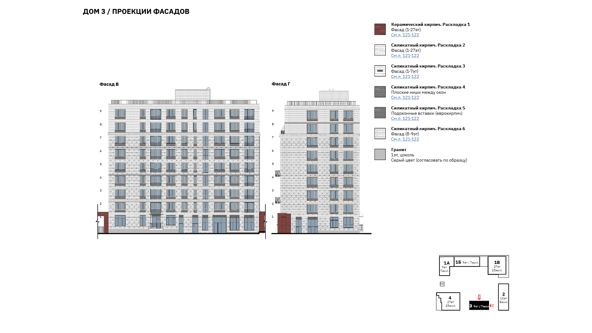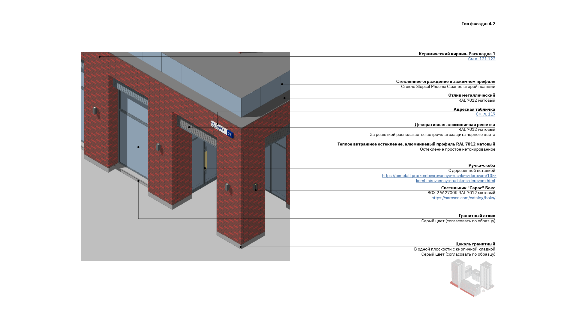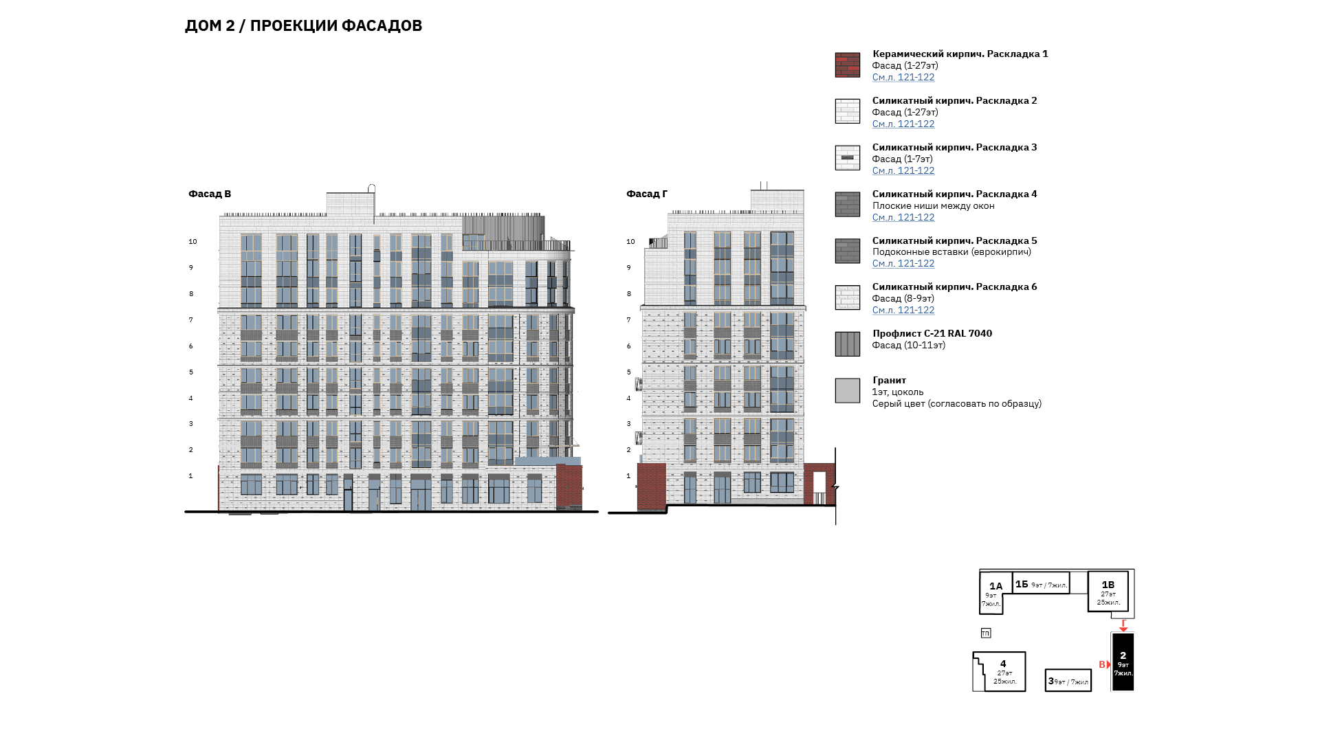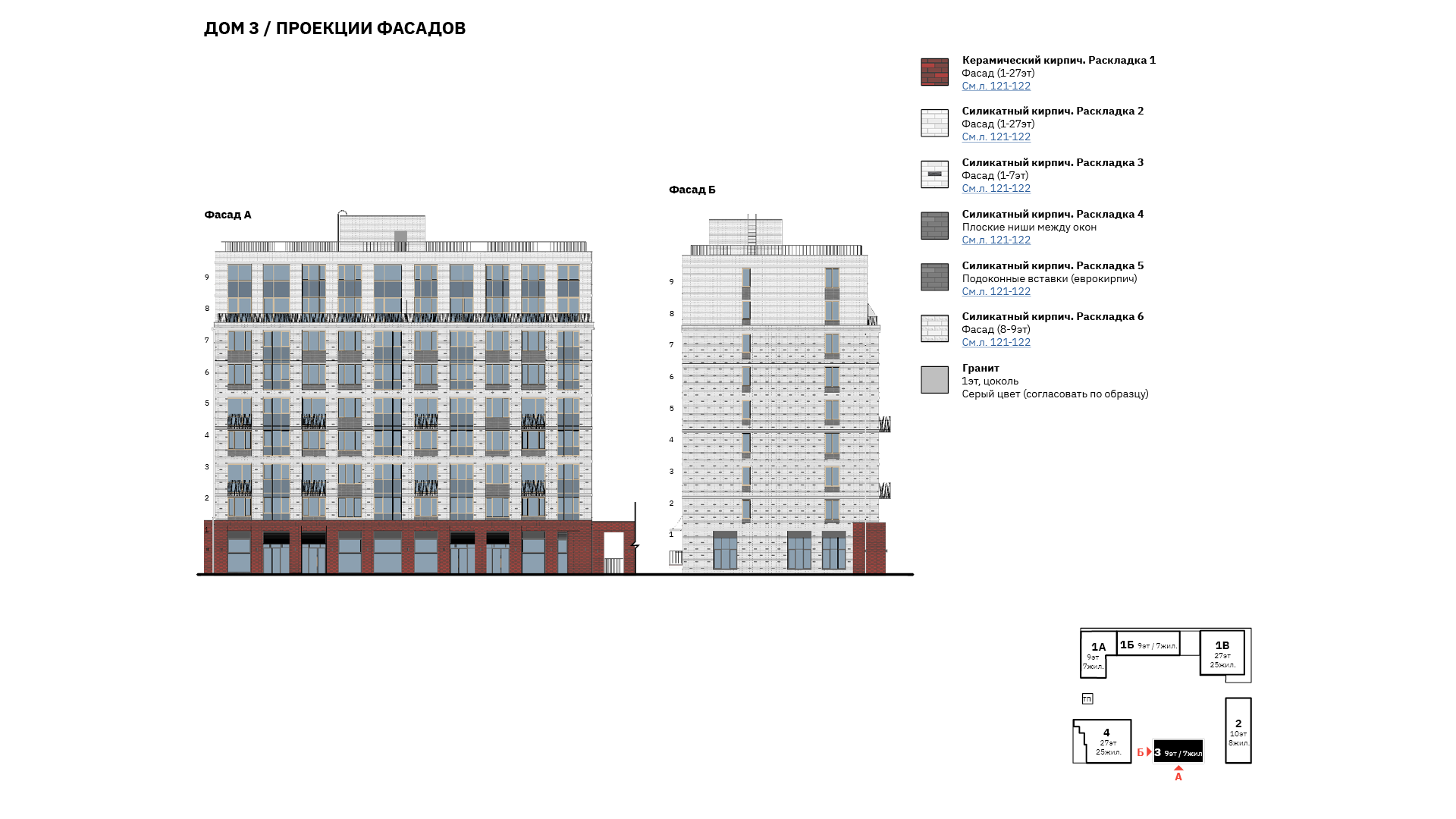 Остальные фасады выполнены контрастно – в сдержанном ключе, чтобы не акцентировать внимание на архитектуре. Отсюда монохромное решение в бело-сером кирпиче с оконными рамами, оформленными под дерево. Красным кирпичом выделен только первый этаж – для большей торжественности, поскольку он отведен под коммерцию.