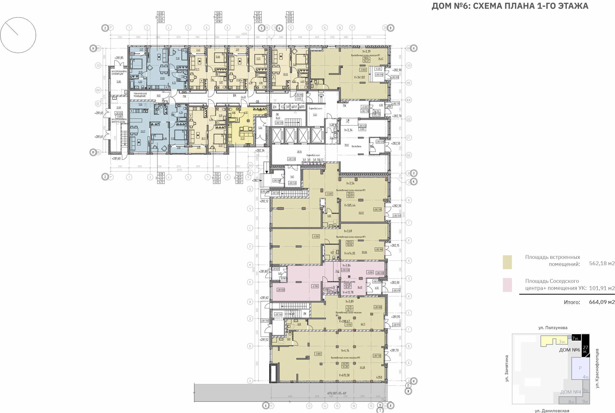 пешеходными зонами, сформирован малоэтажными жилыми домами (7-9 этажей) и