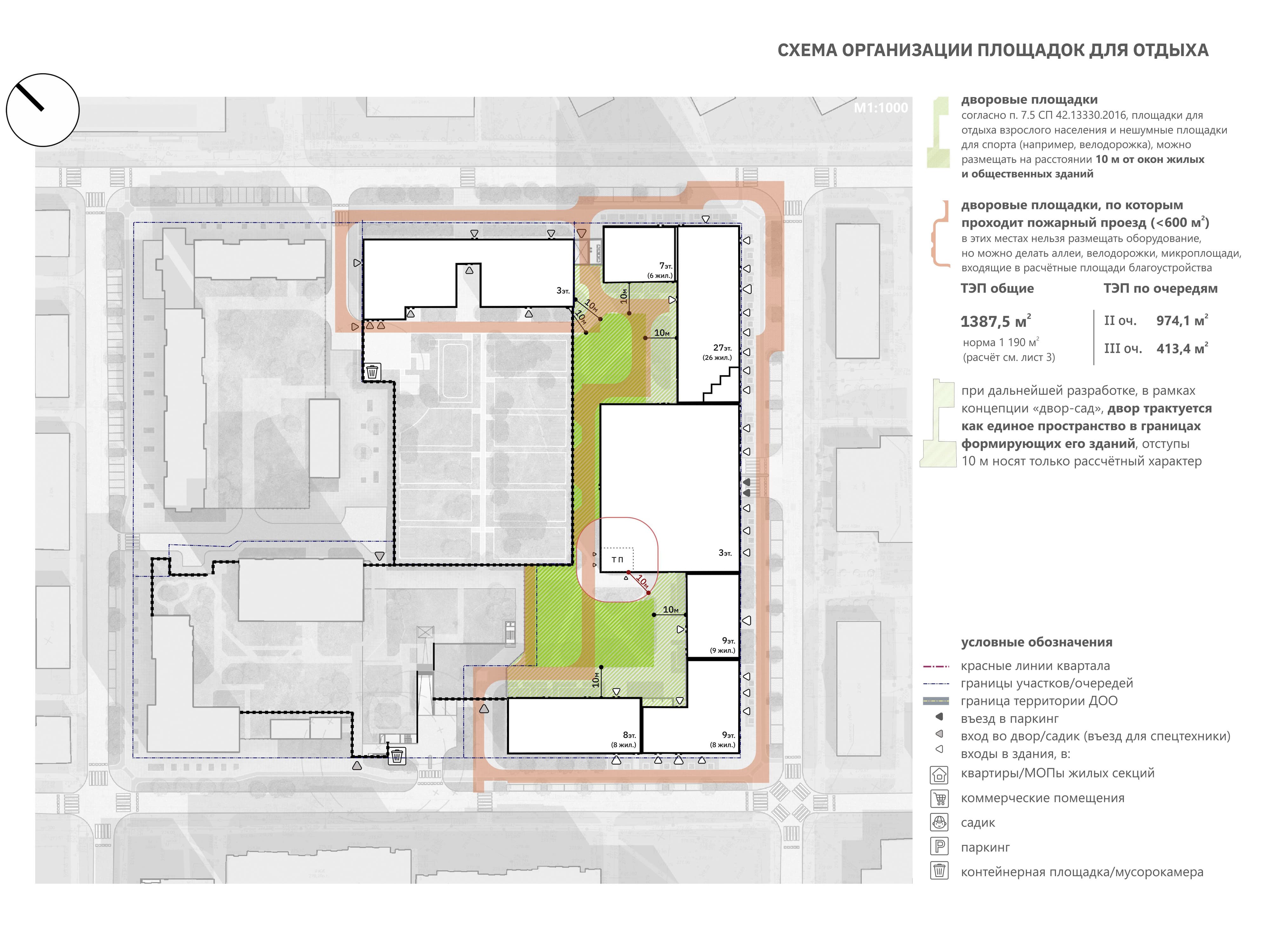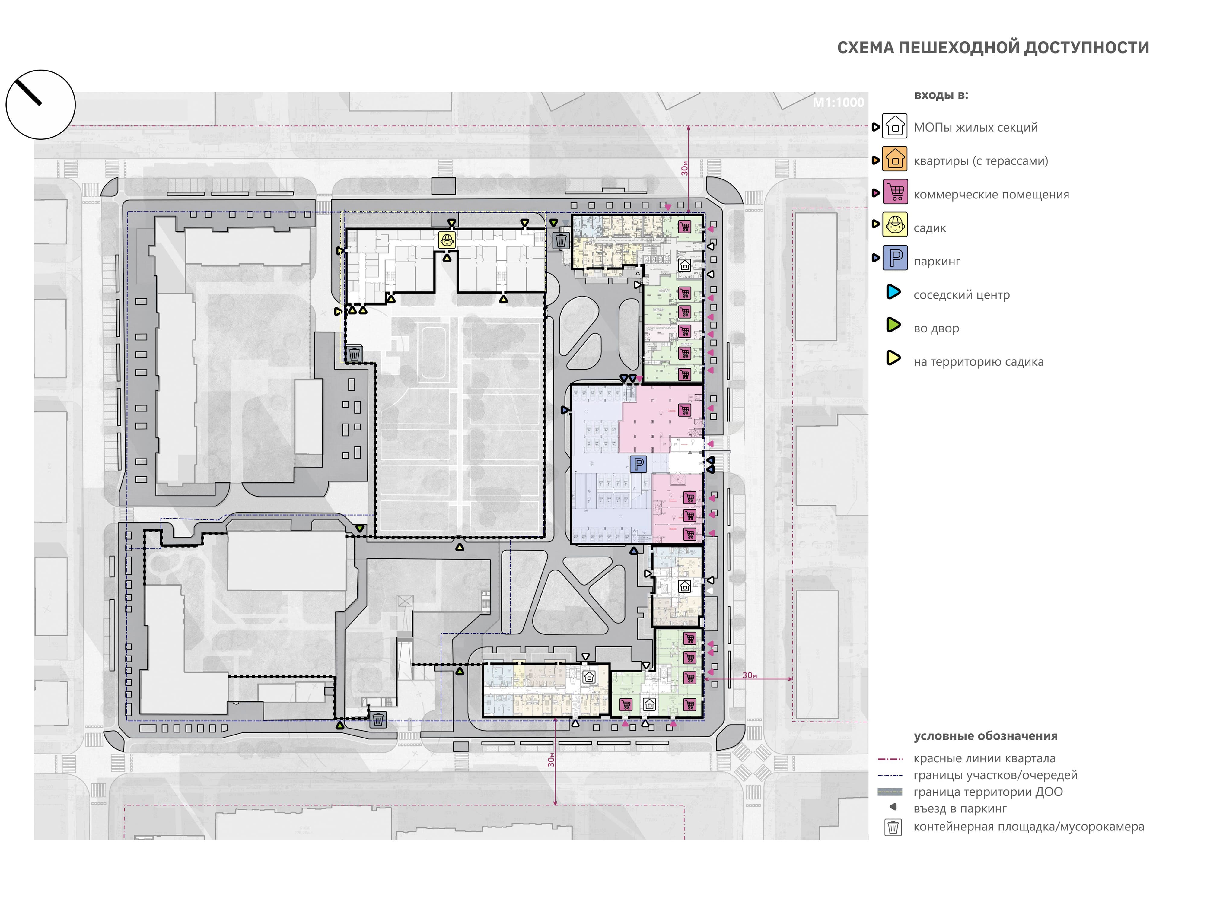 в концепции принципами базовой этажности и сомасштабности, разделения частного и