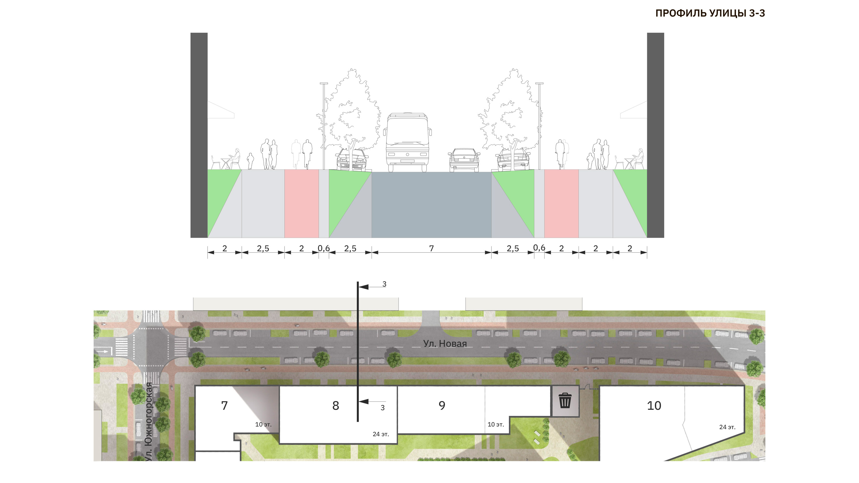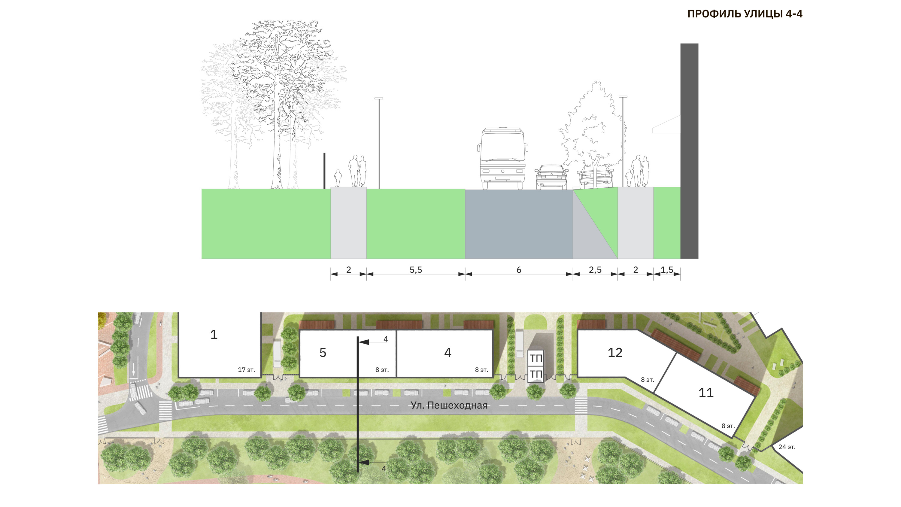 высотных элементов застройки. Со стороны улицы все дома выполнены в сдержанной
