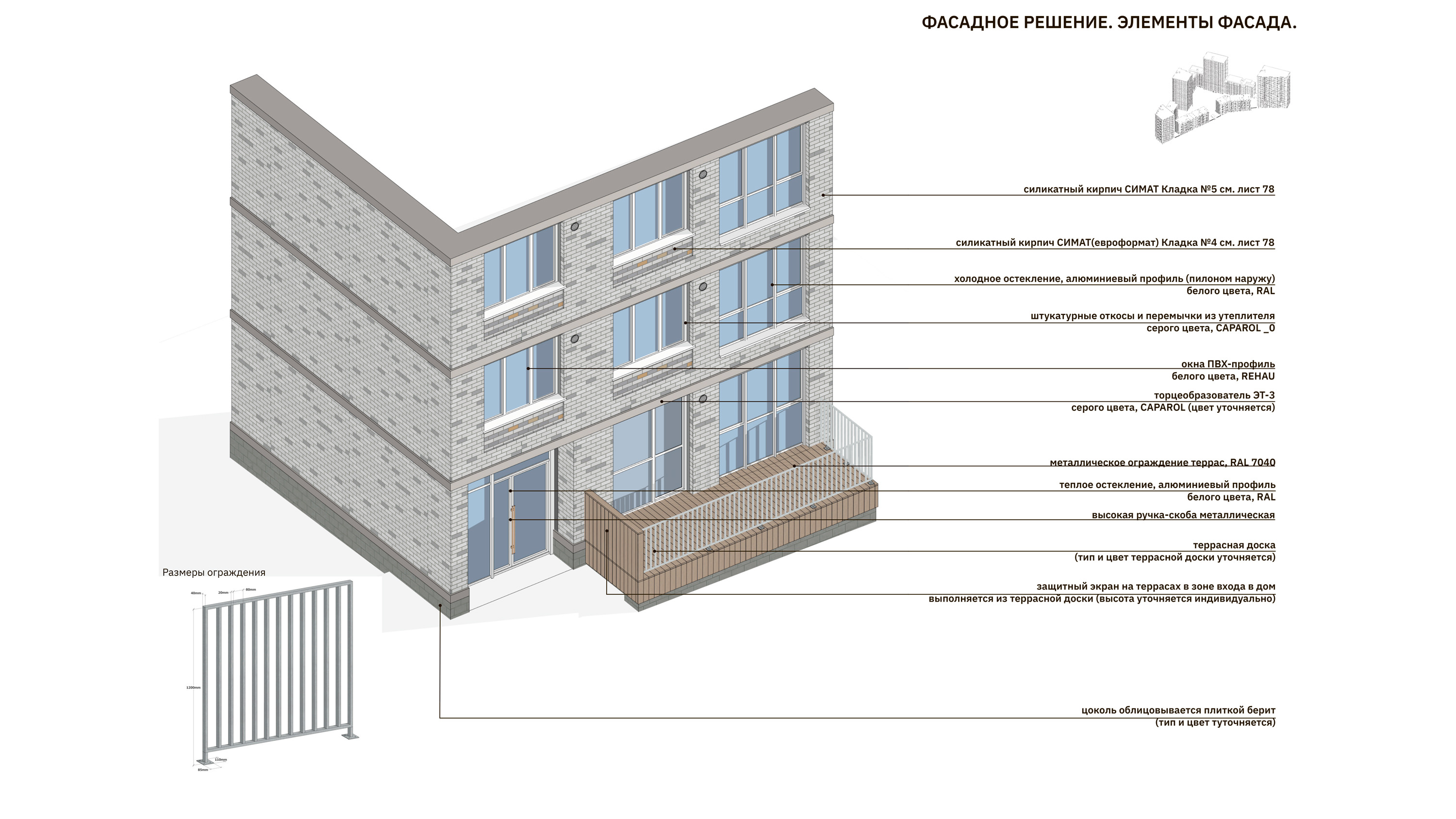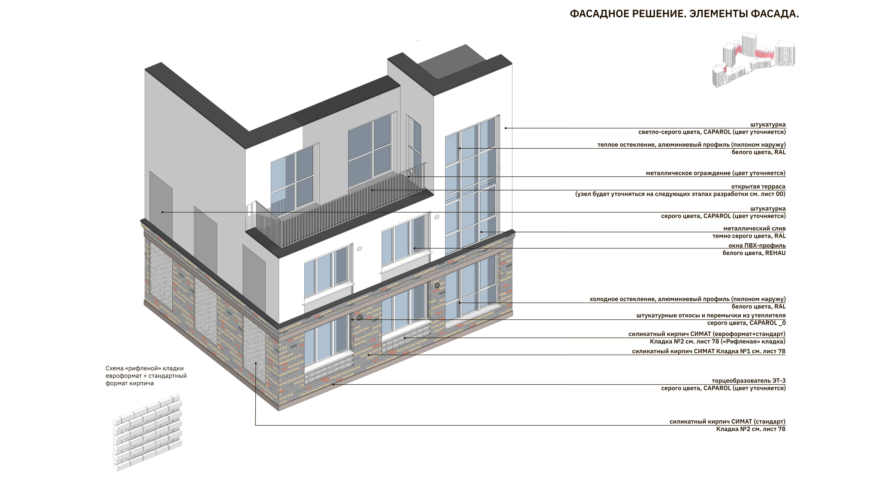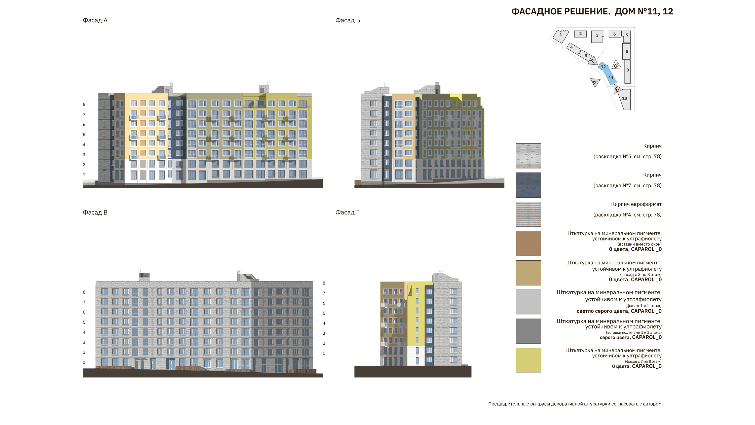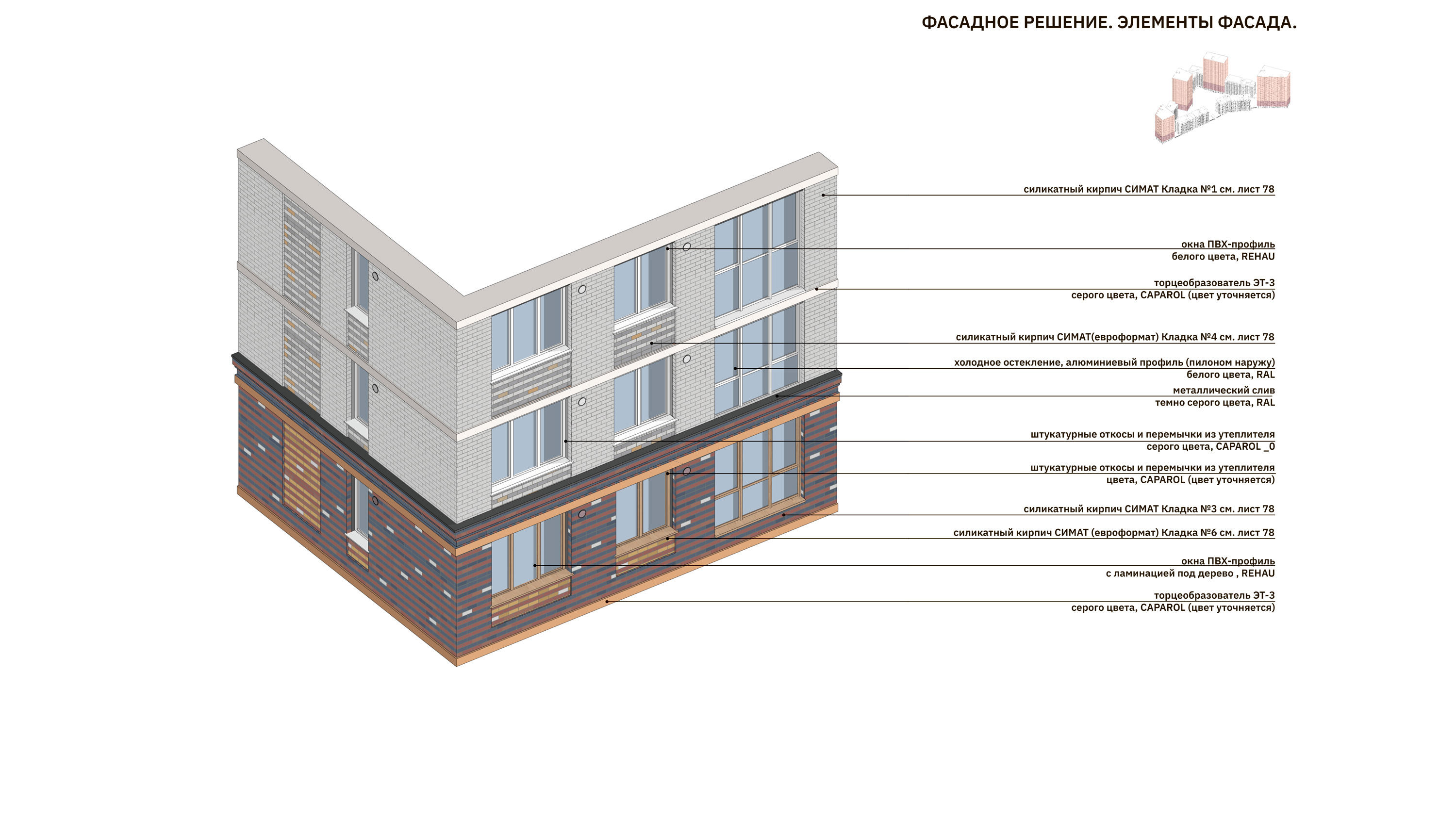 Архитектура фасадов предполагает акцентное выделение базовой этажности, все объемы