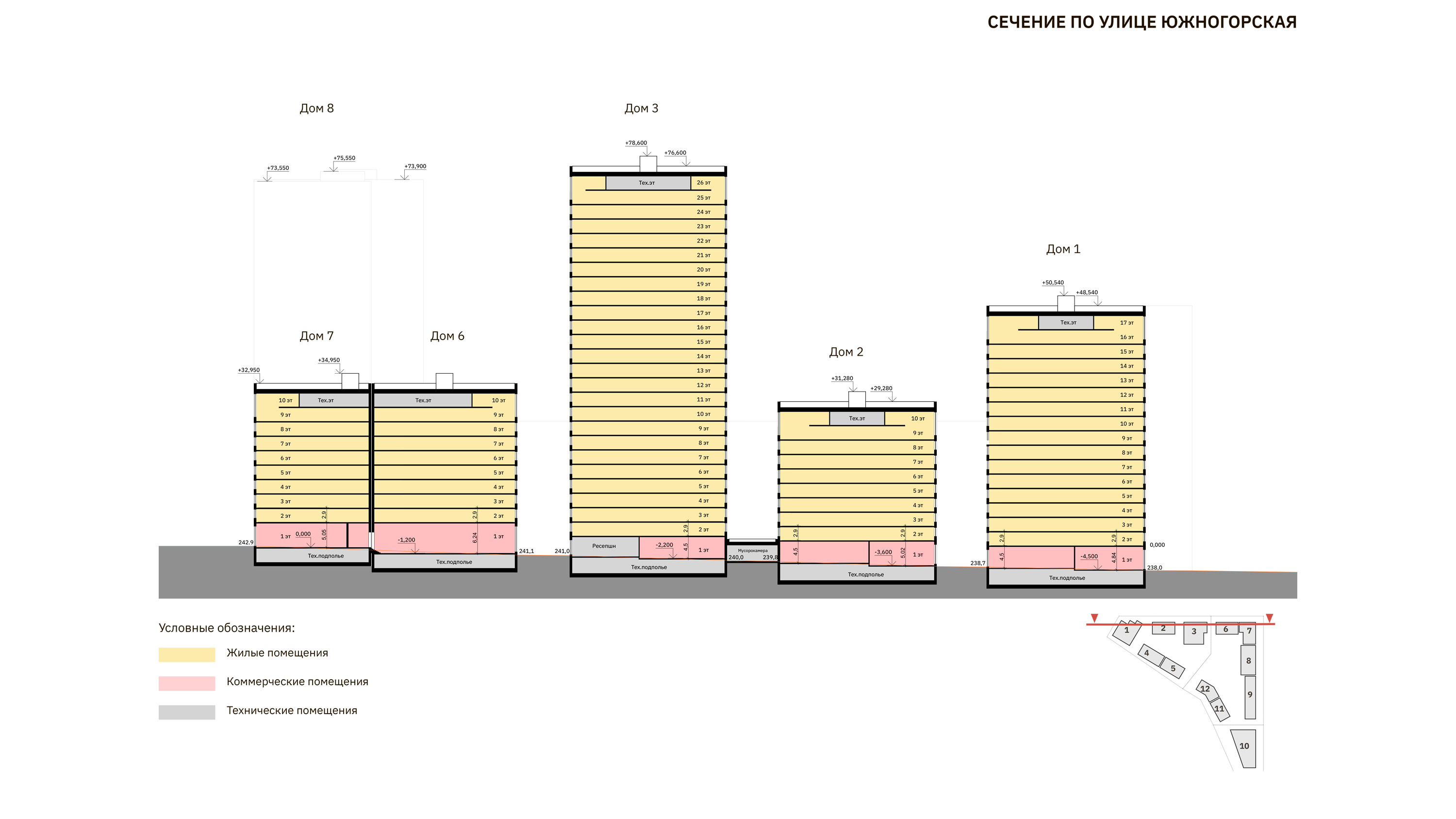 этажности (8-10 этажей). Между ними находятся несколько высоток (20-25 этажей). Квартал