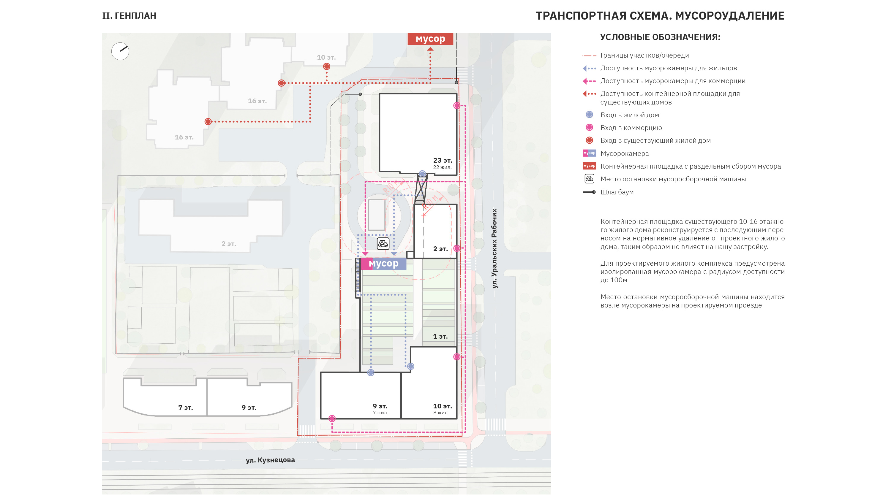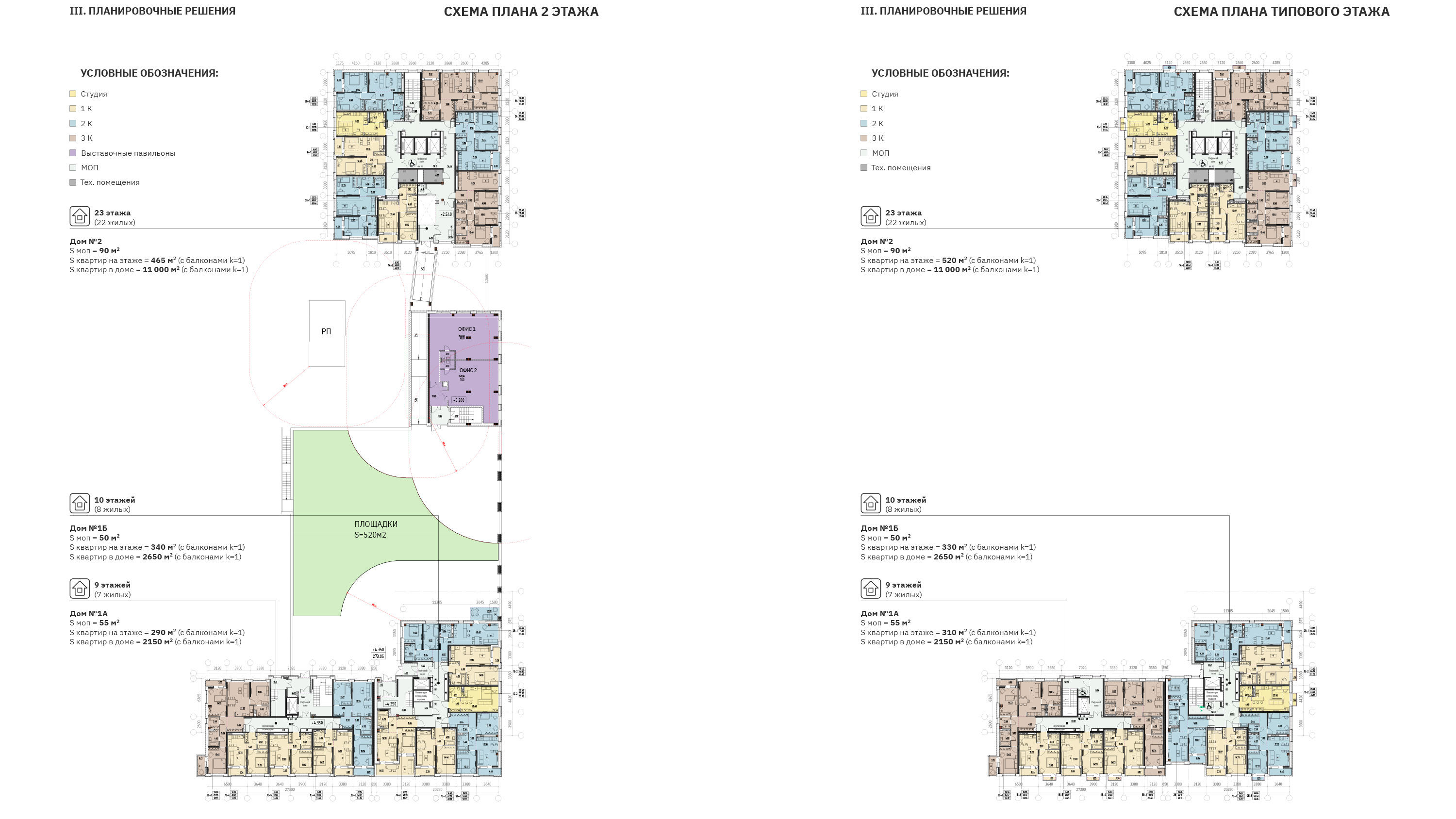 Было разработано две основных точки подхода к жилому комплексу – зоны с центральными