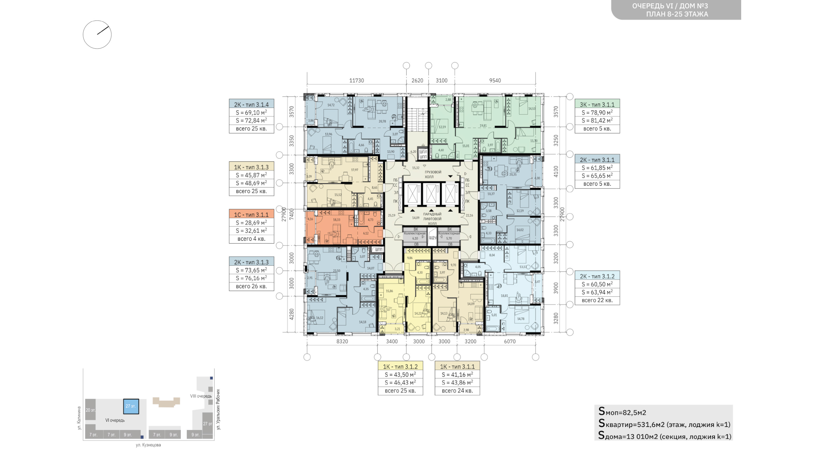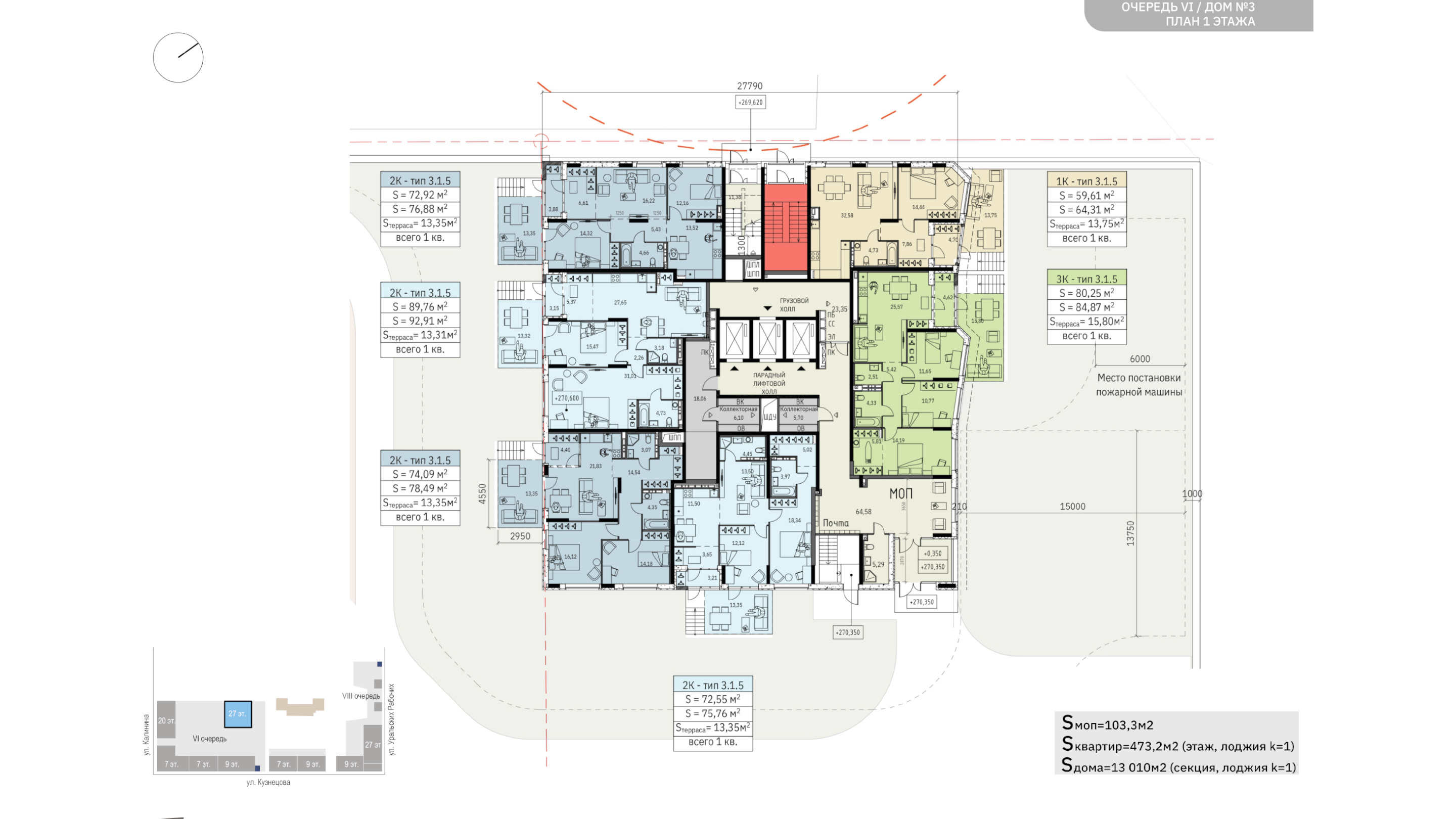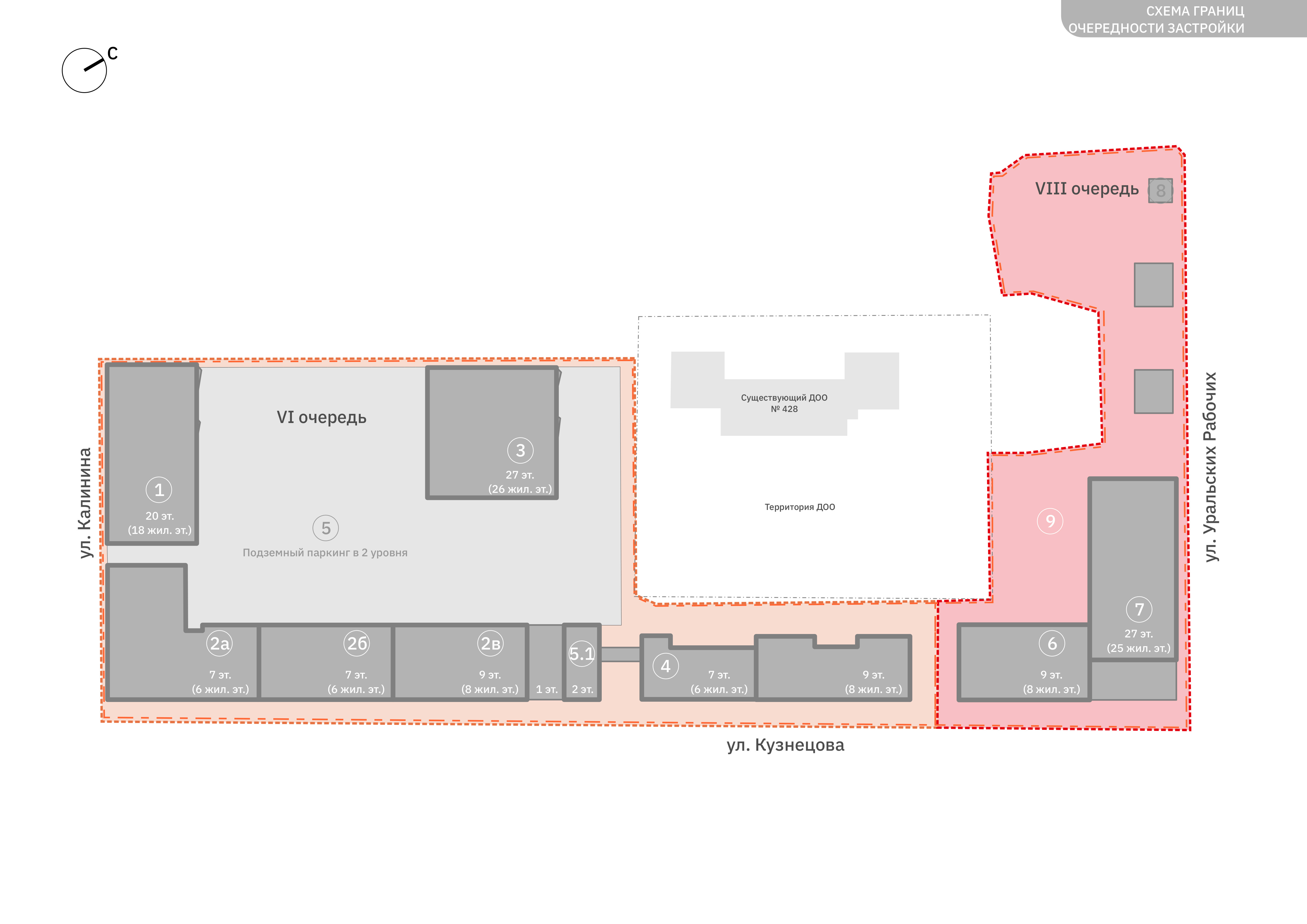 сформирован жилыми зданиями базовой этажности (7-9 этажей), частное и общественные