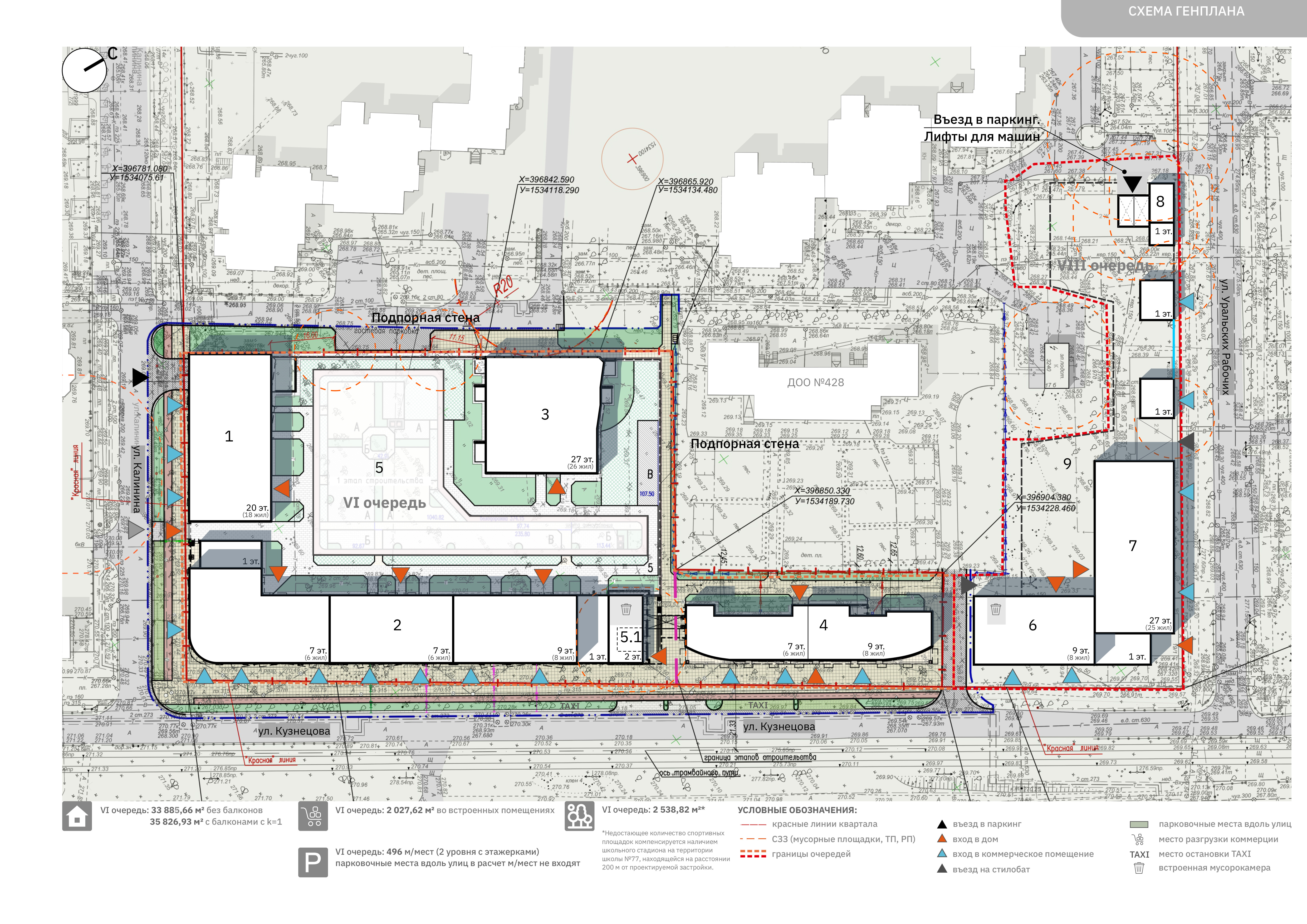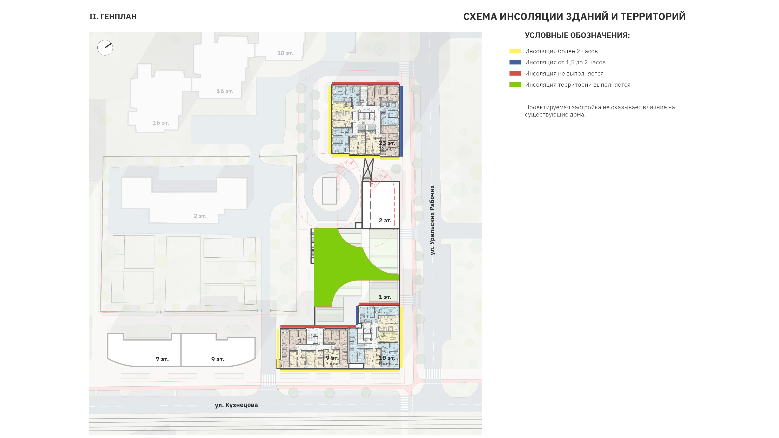 Проект выполнен, четко следуя системе заданных градостроительных параметров: периметр