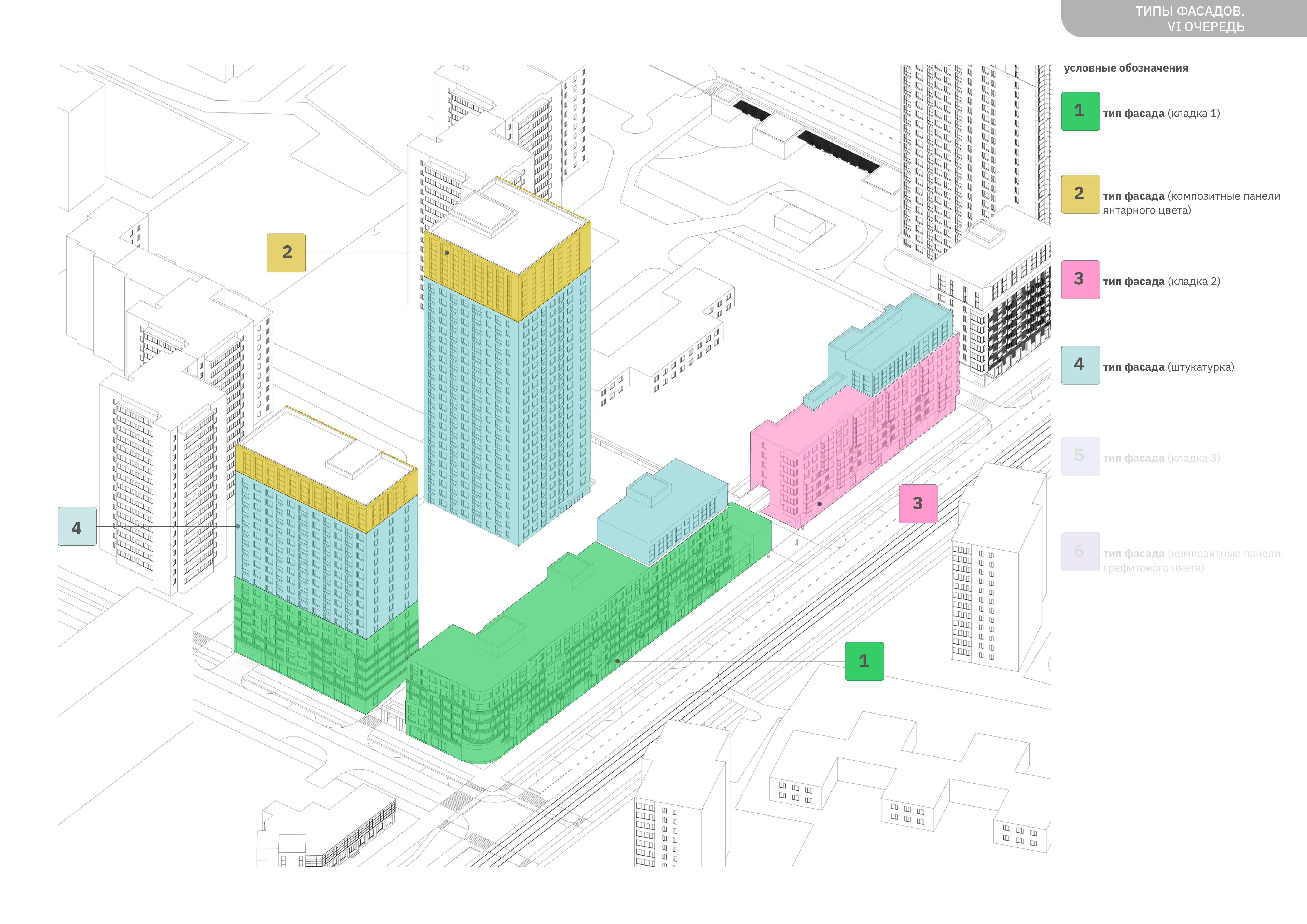 паттерном. Высотные части покрыты белой штукатуркой, при этом крыши высоток также выделены
