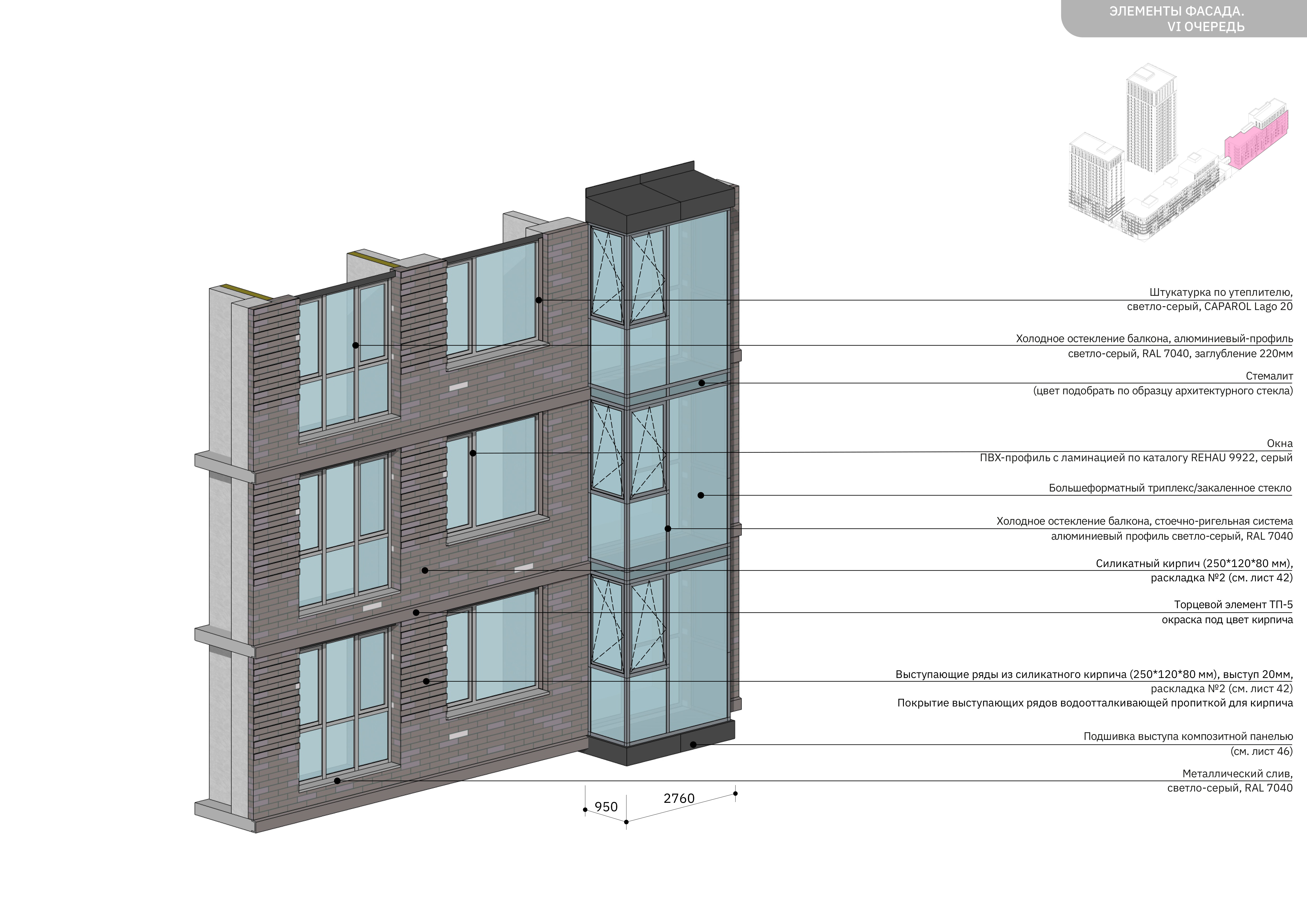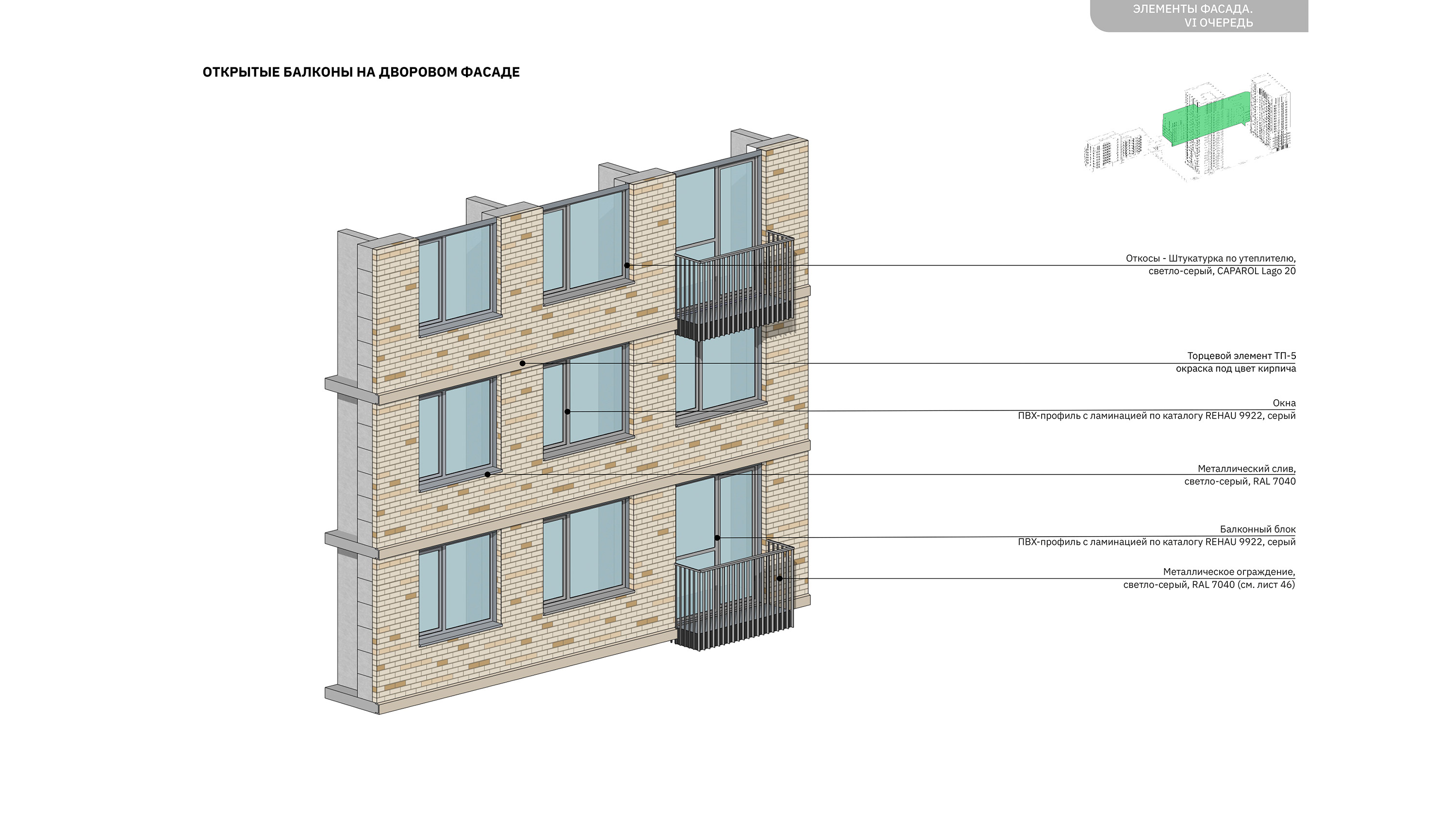 элементы фасадной пластики: треугольные эркеры на одном из зданий, прямоугольные балконы с