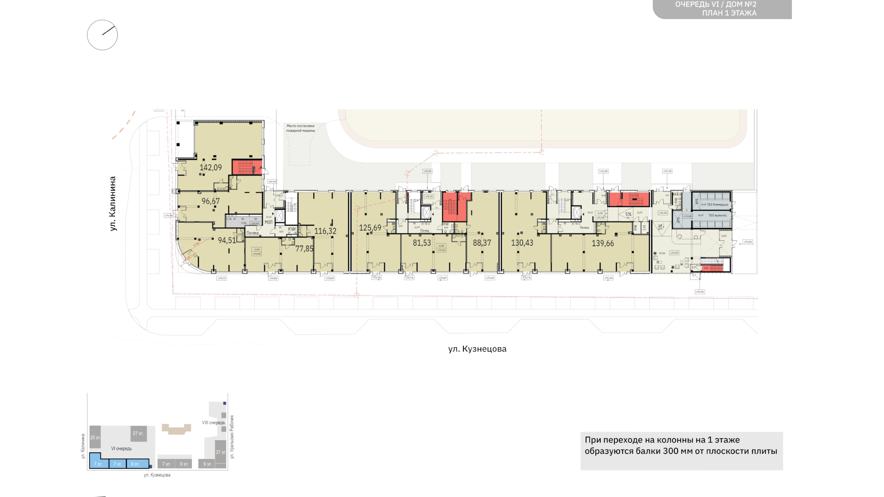 - первый этаж, полностью сформированный коммерцией с витражным остеклением;