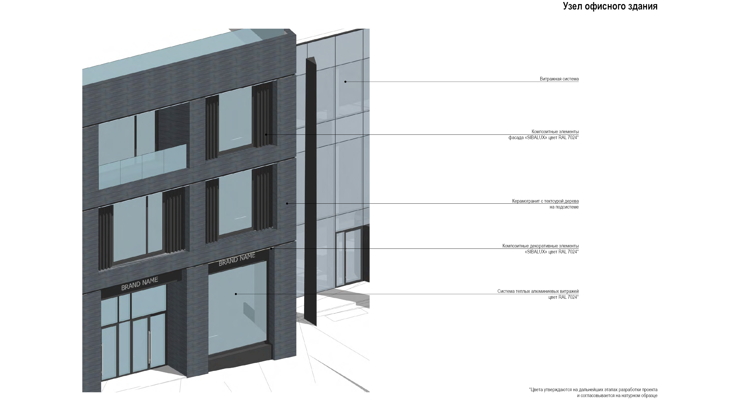 материалов: вентилируемый фасад общественного здания с витражной нижней частью и