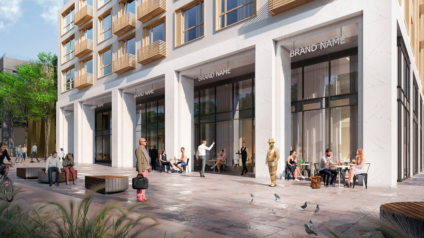 комплекса создано три рекреационные зоны – благоустроенный двор на стилобате,