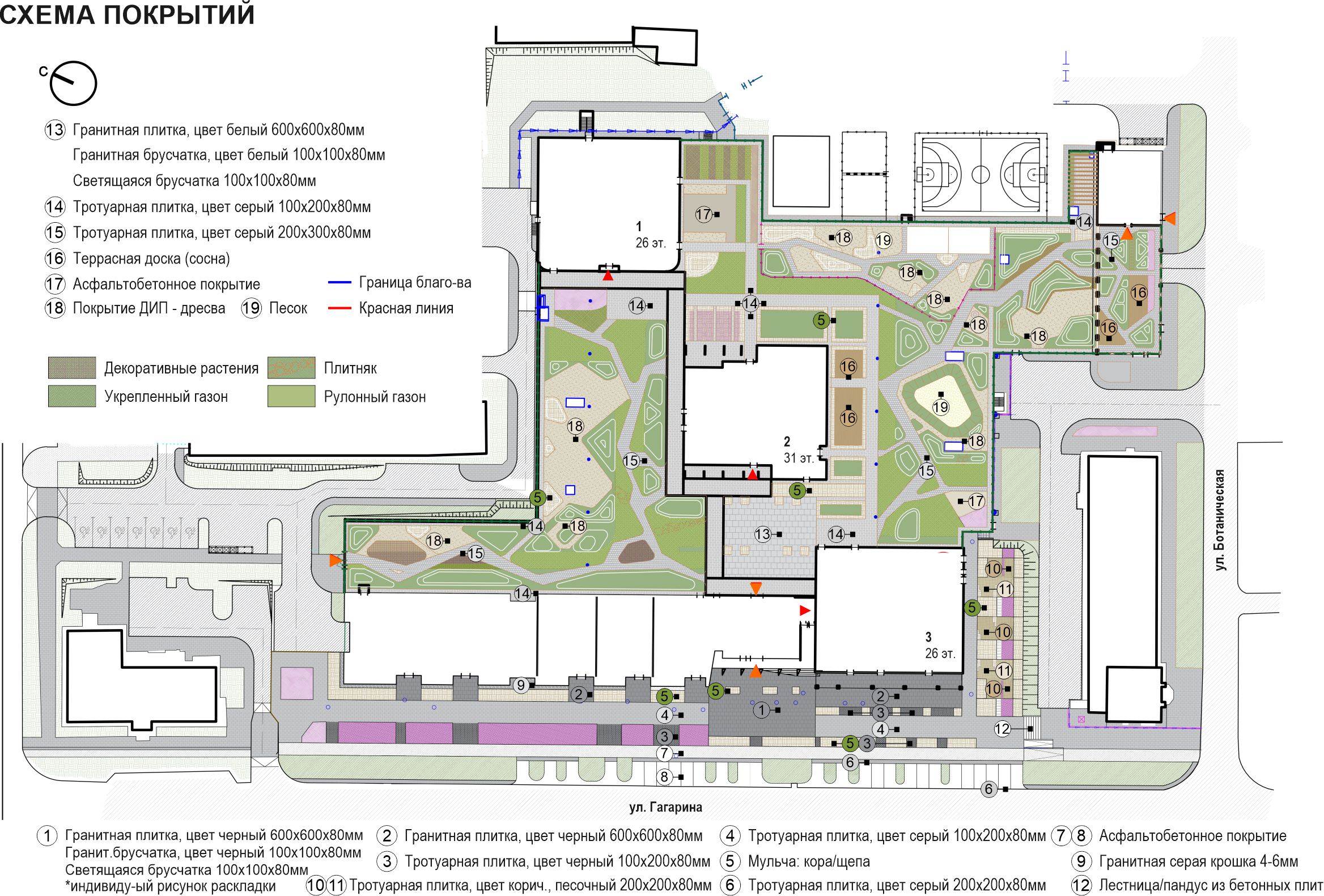 зонирования. Из центрального ресепшена в два дома, расположенных в глубине участка ведет