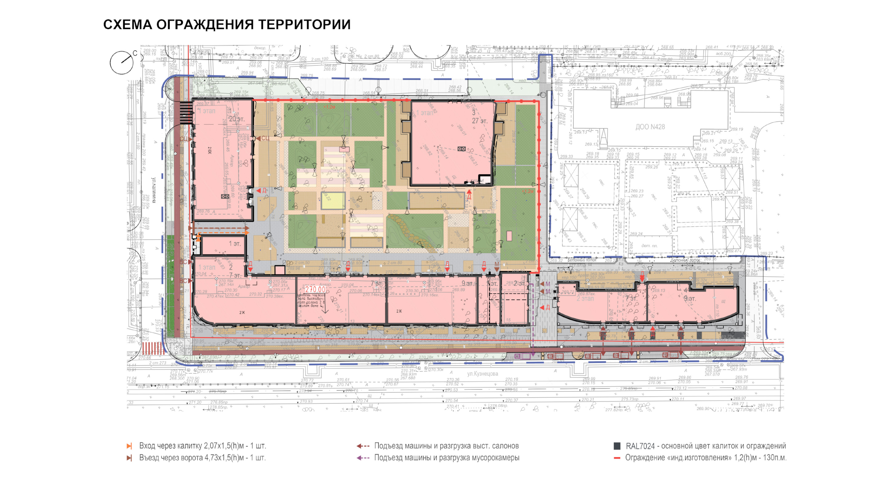 Центральный вход в жилой комплекс со стойкой администрации находится на улице