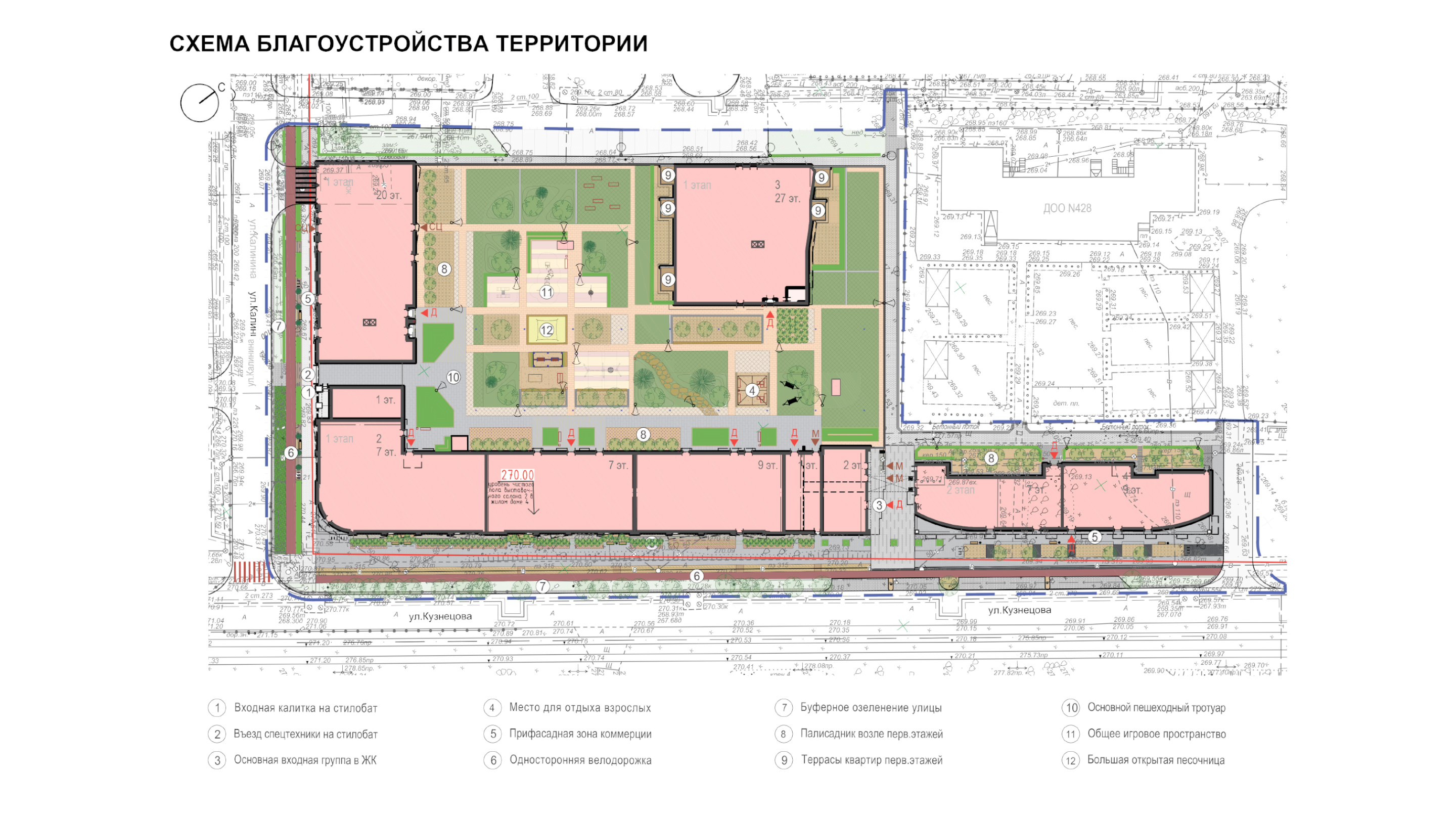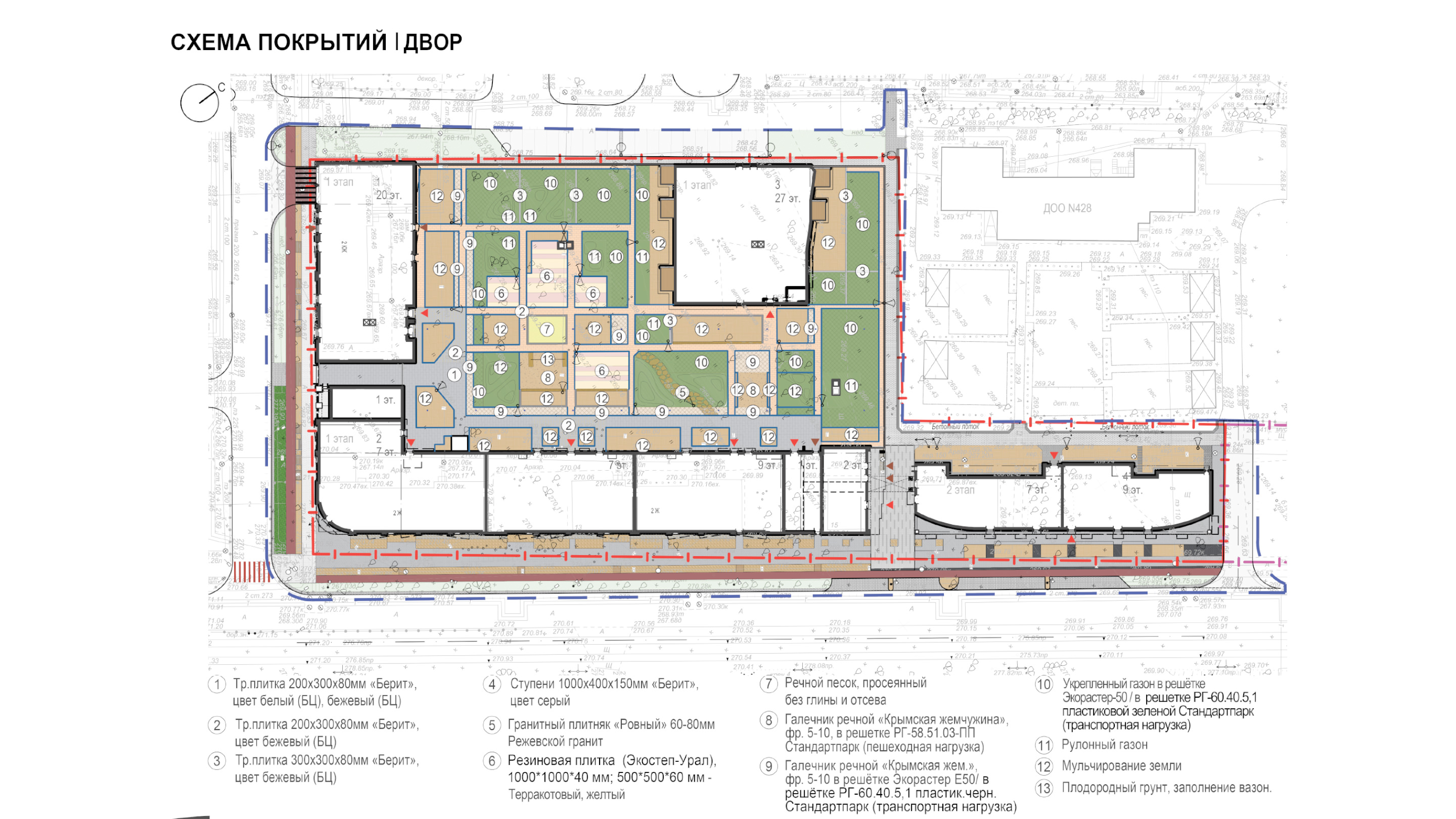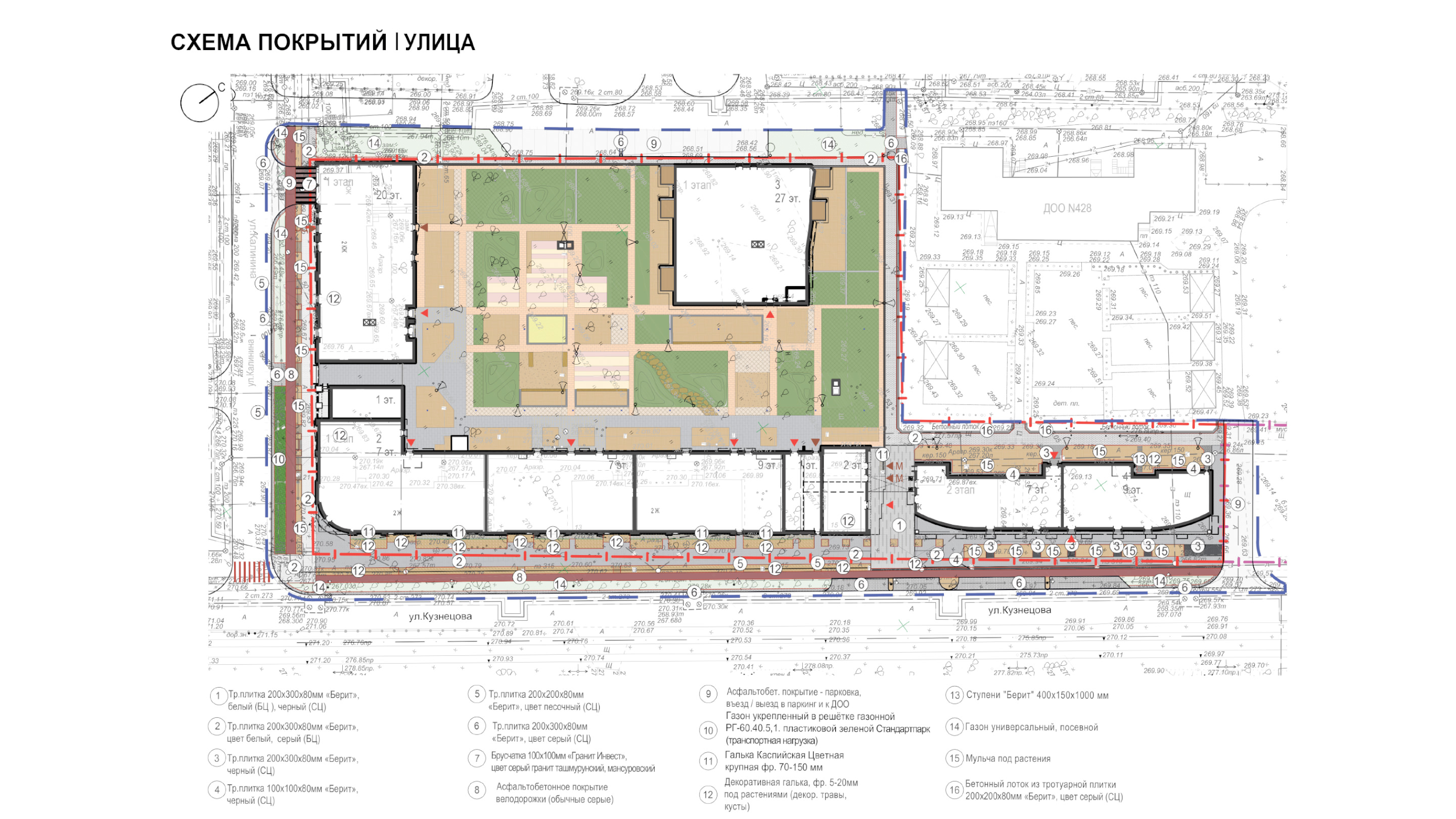 Проект благоустройства этого жилого комплекса состоит из двух частей: разработки