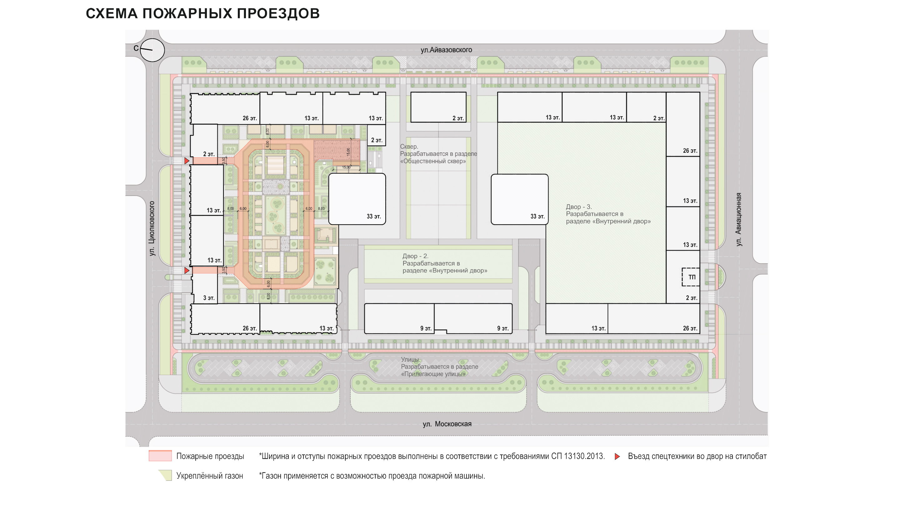 часть, необходимая для пожарного проезда – это зеленая территория.