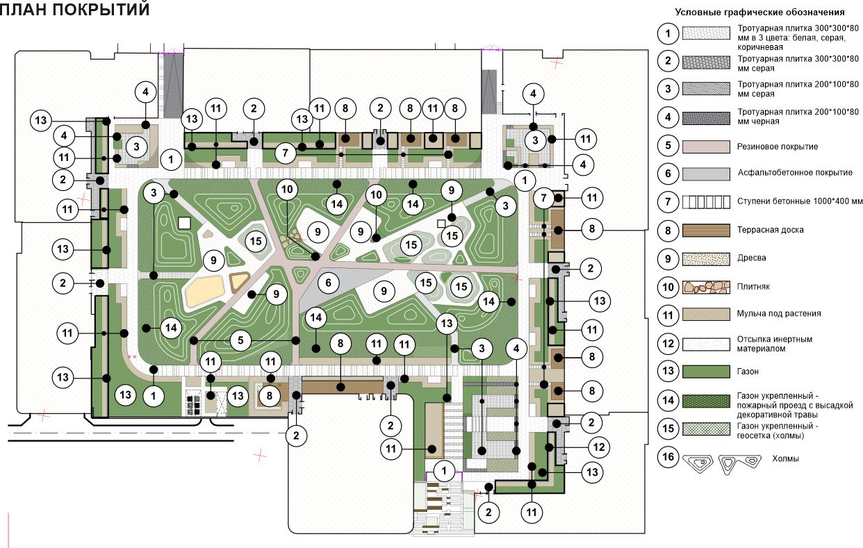 Особое внимание было уделено разработке центральной части двора. В районе, где