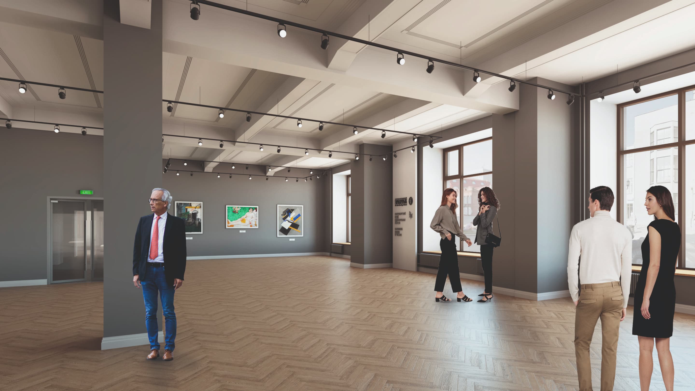 было при необходимости трансформировать пространство под различные выставки. Под потолком