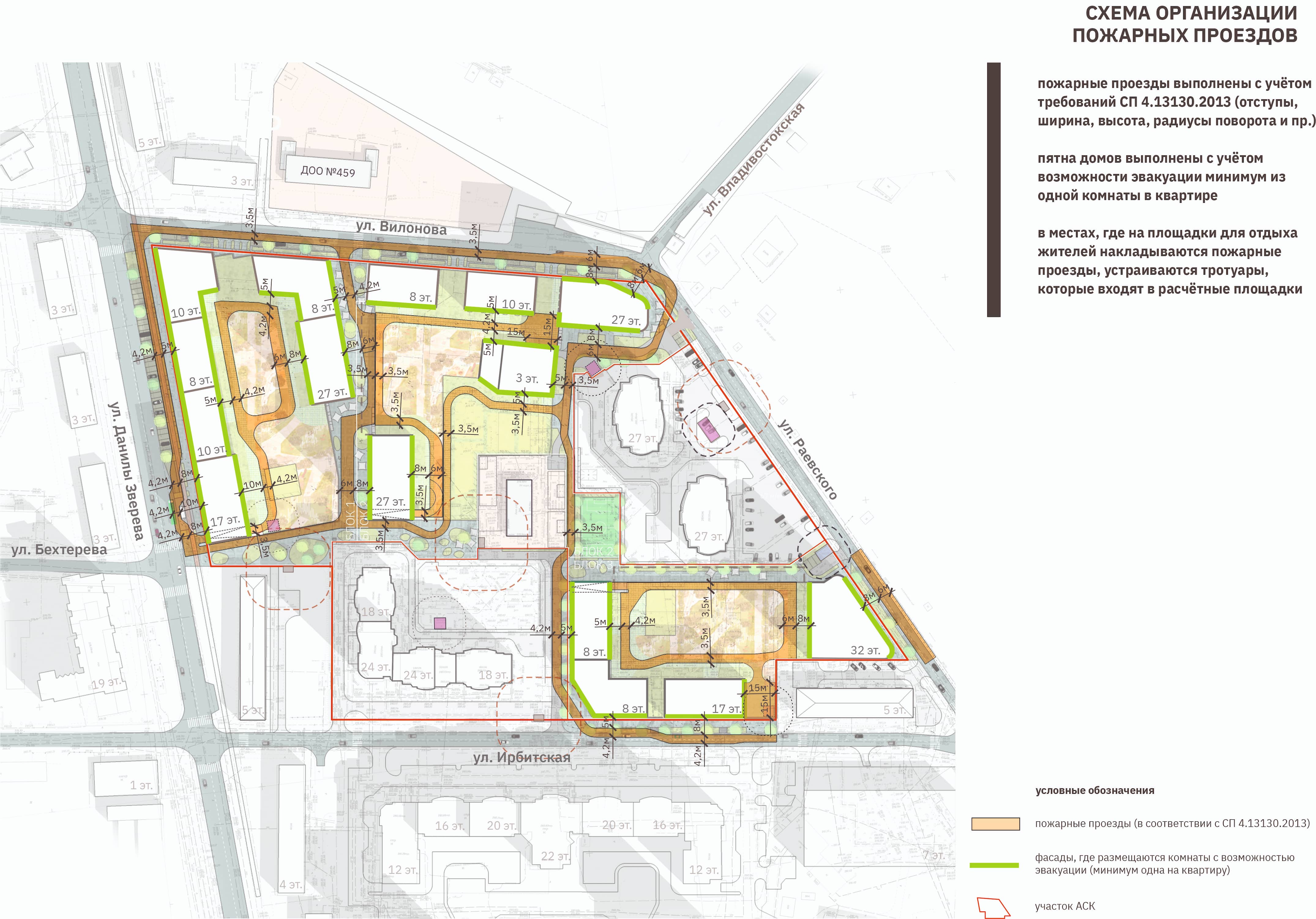 использовать территорию детского сада и сократить площадь пожарного проезда.