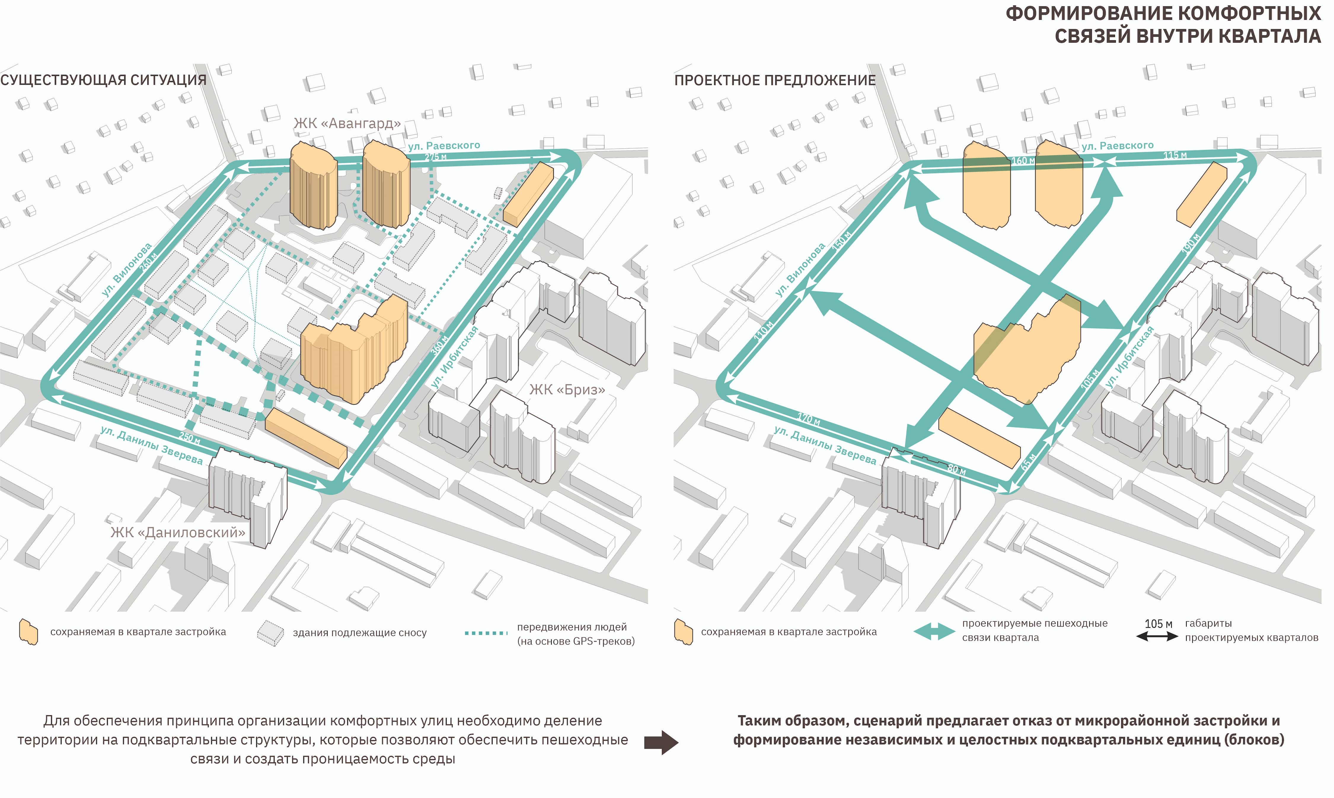 чувствовать себя в сомасштабном пространстве. Между малыми квартальными единицами