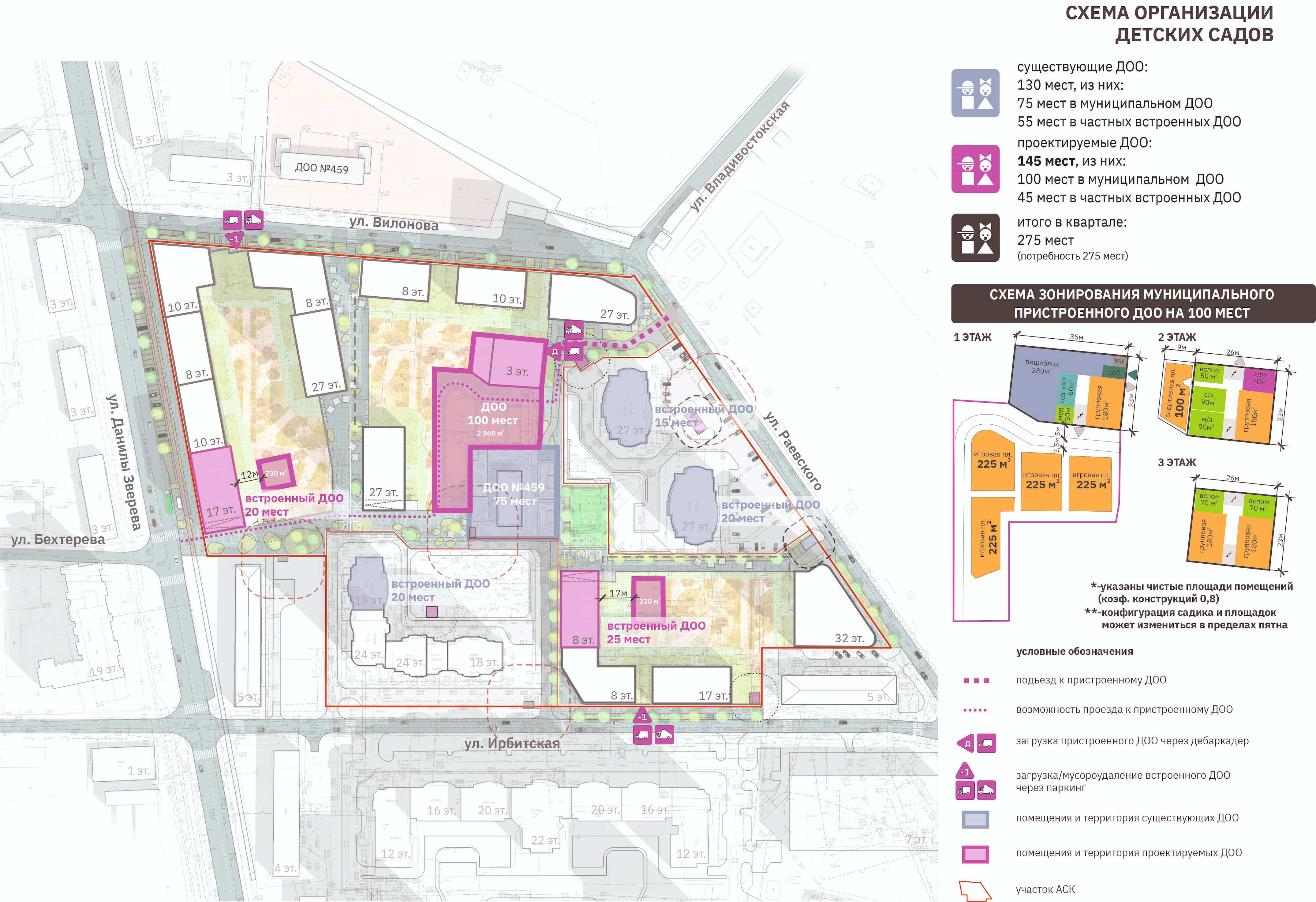 Градостроительная концепция также предполагает реконструкцию детского сада. Здание будет