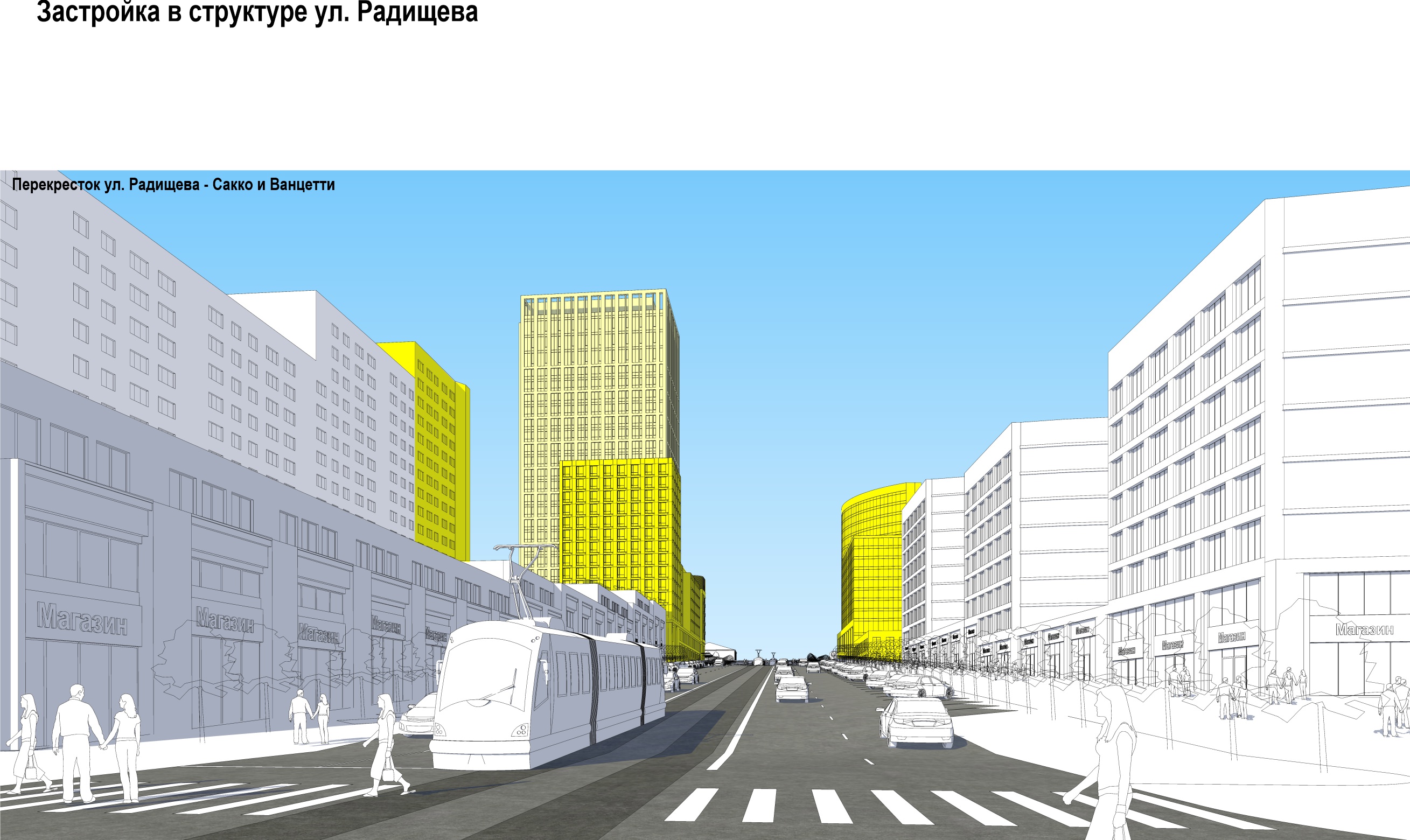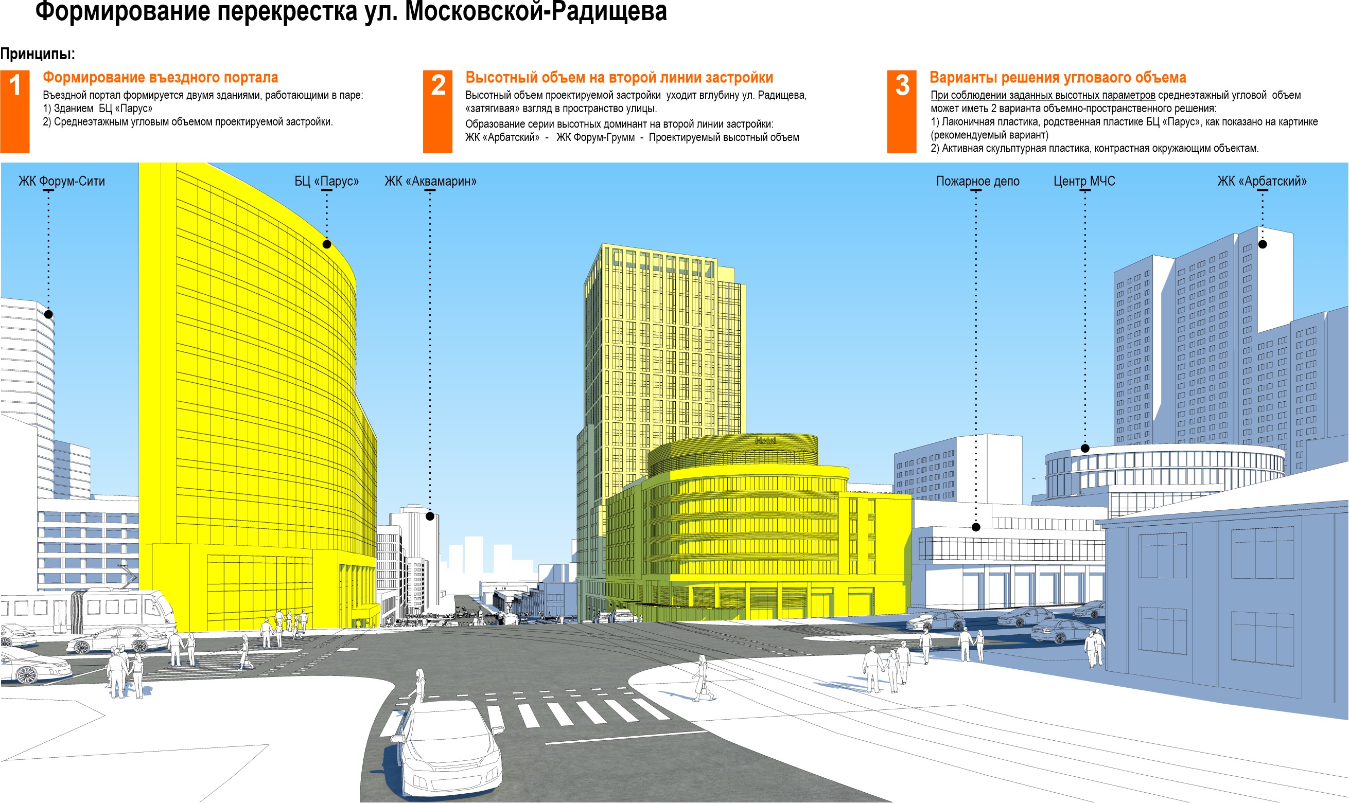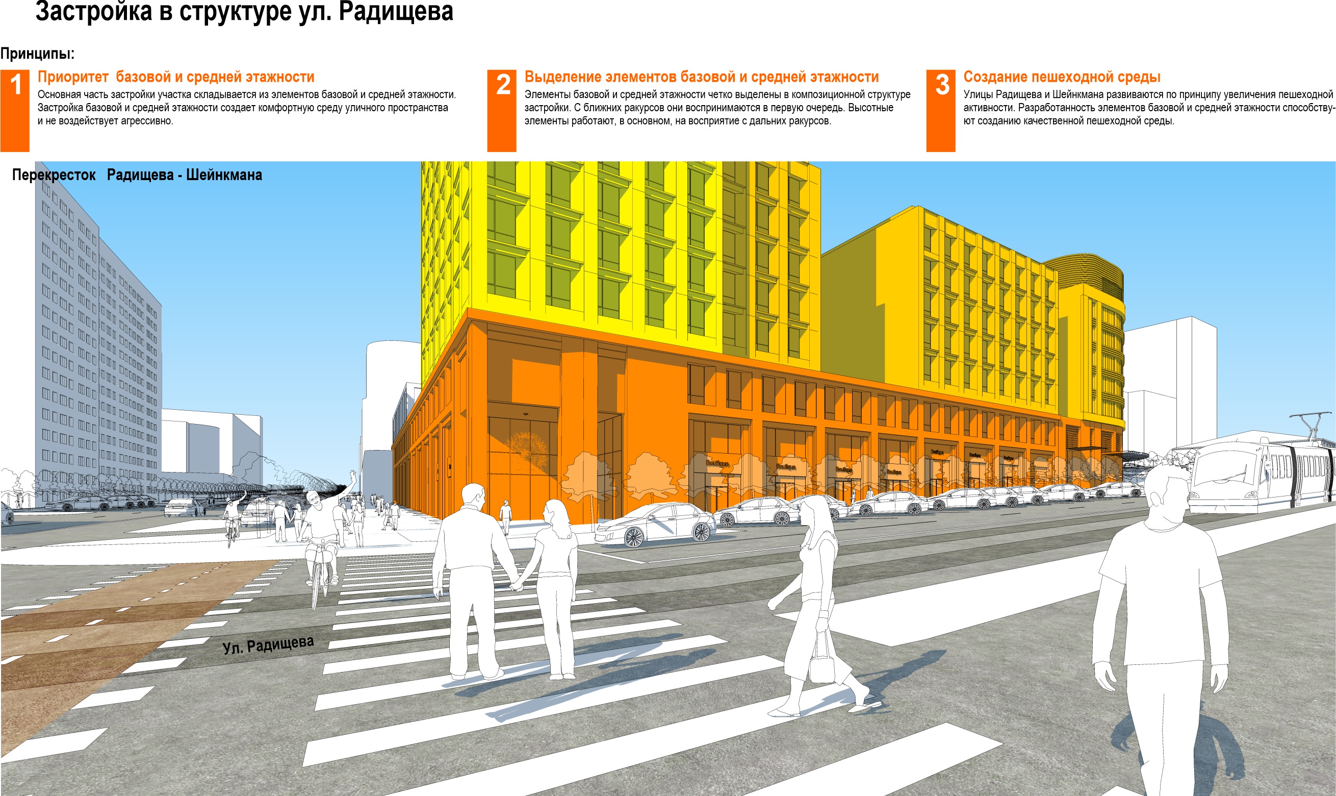 В качестве акцента на углу улиц Шейкмана и Радищева решено было построить высотку,