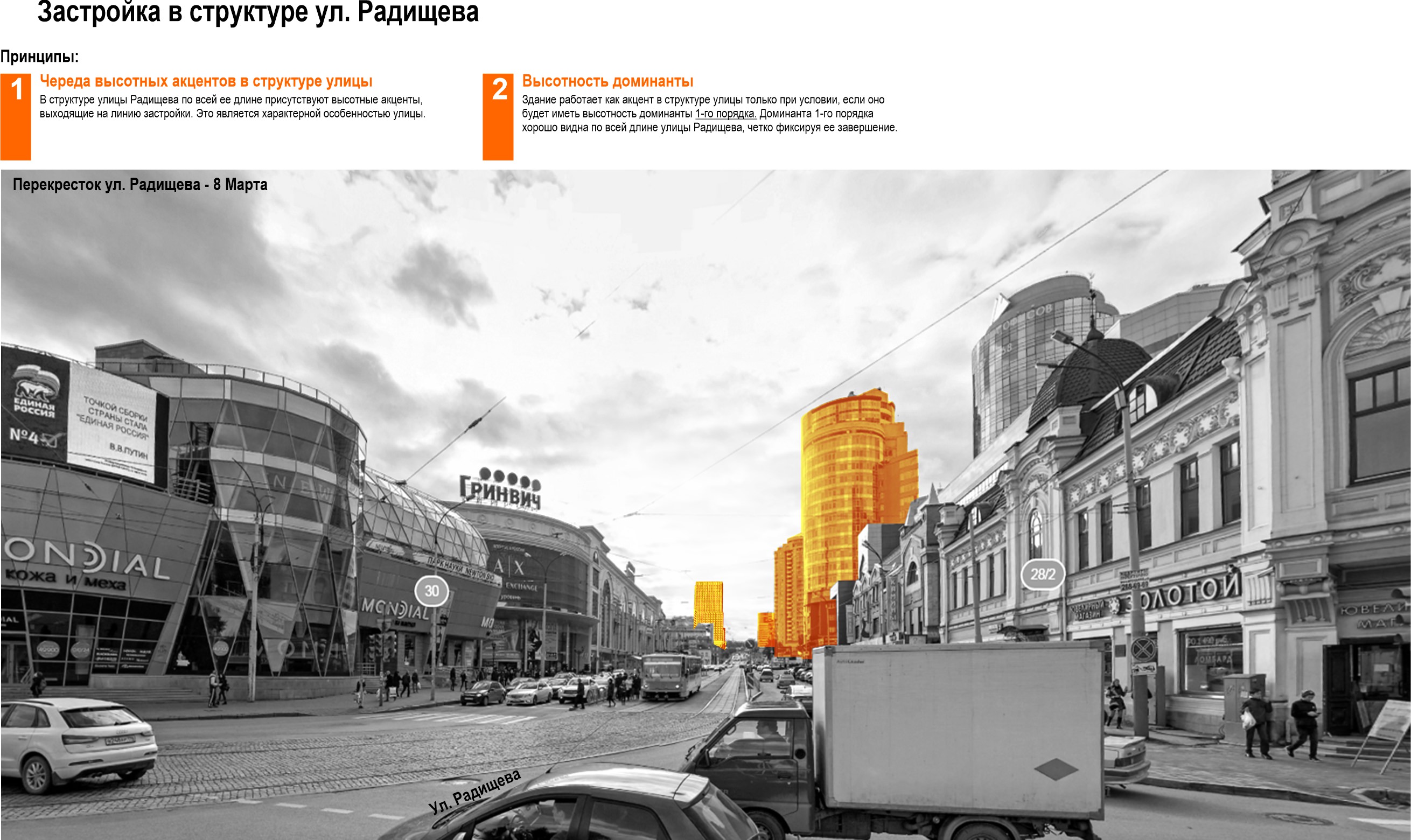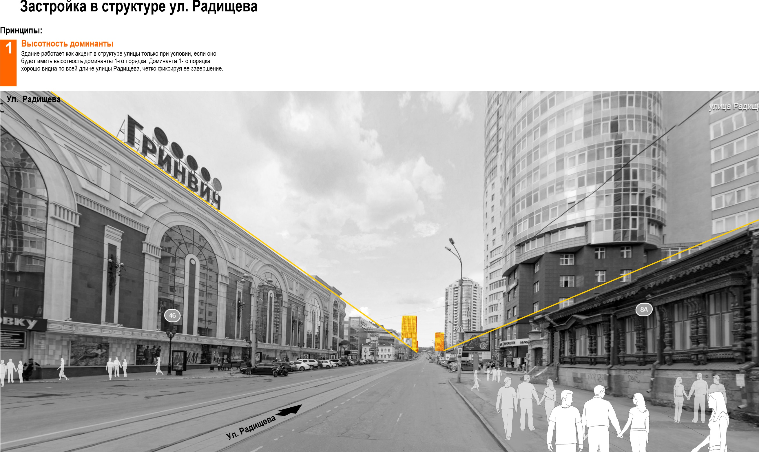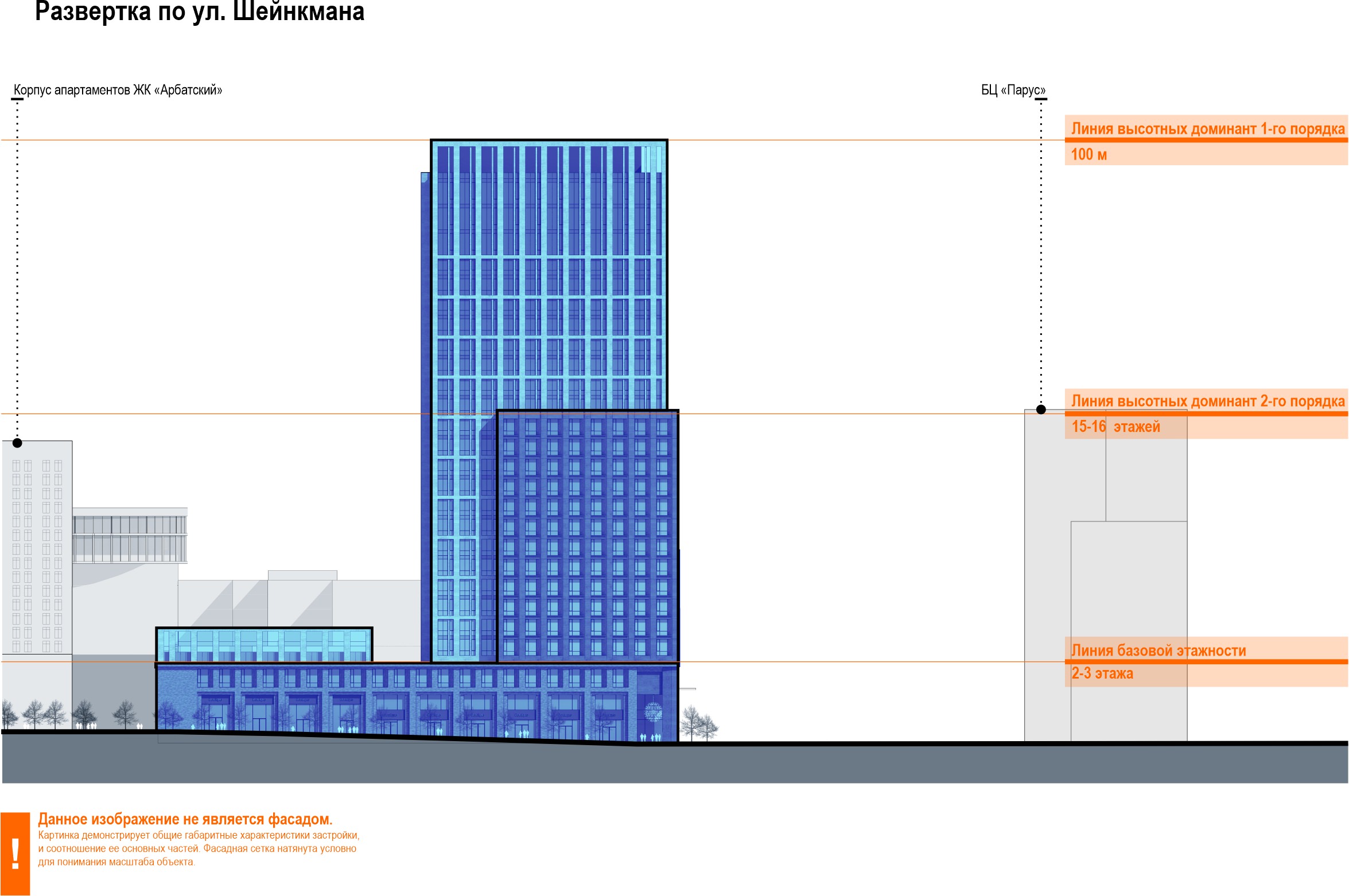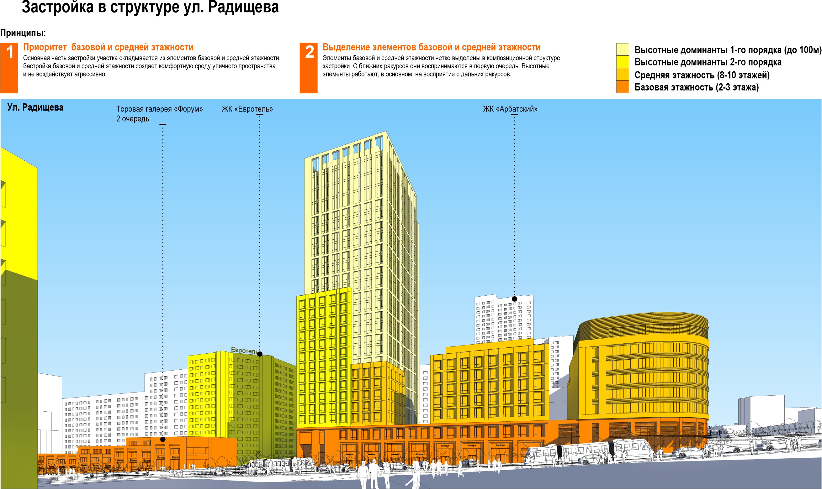 В качестве акцента на углу улиц Шейкмана и Радищева решено было построить высотку,